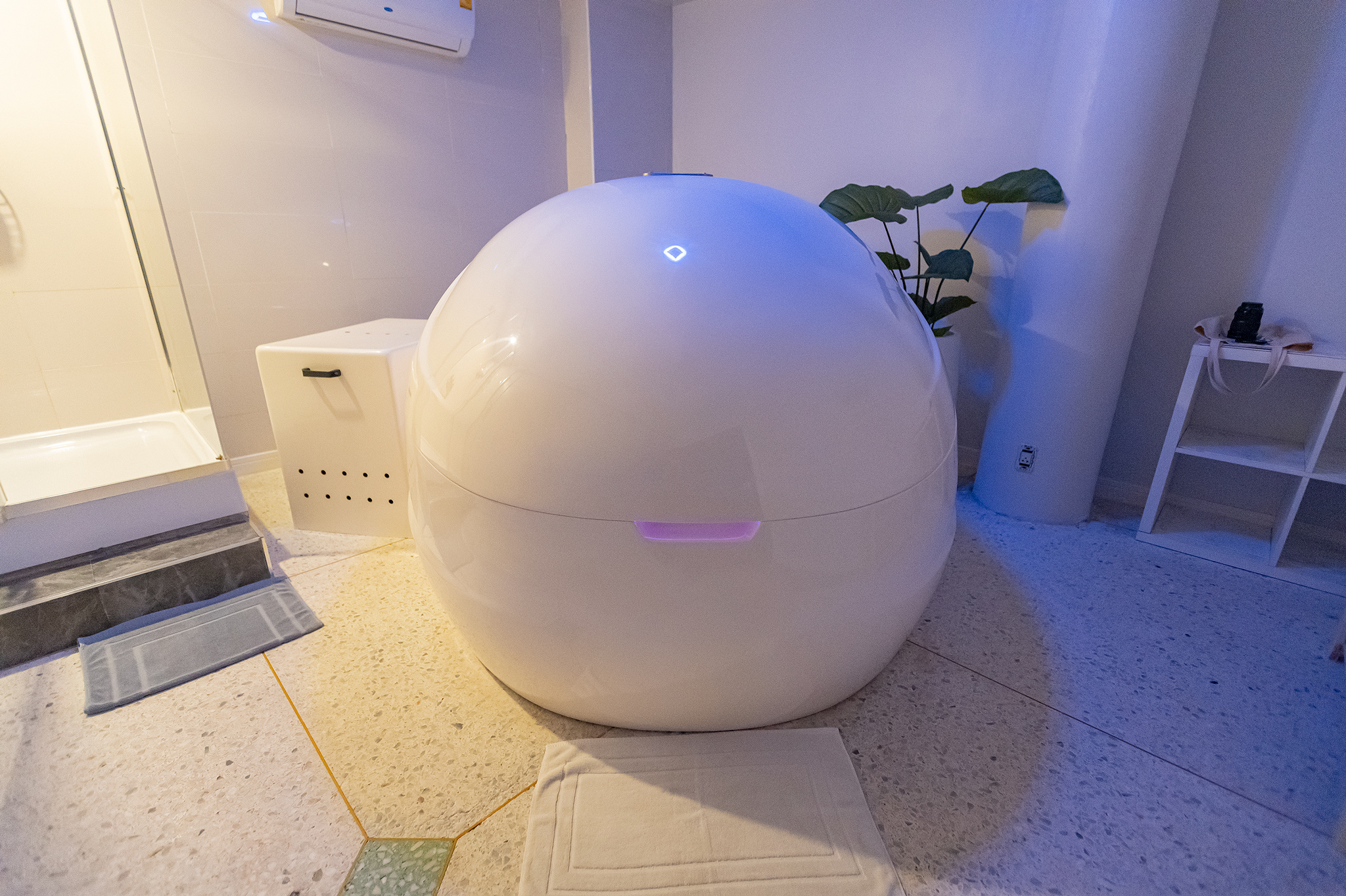방안에는 플로트 테라피 캡슐이 설치되어 있으며