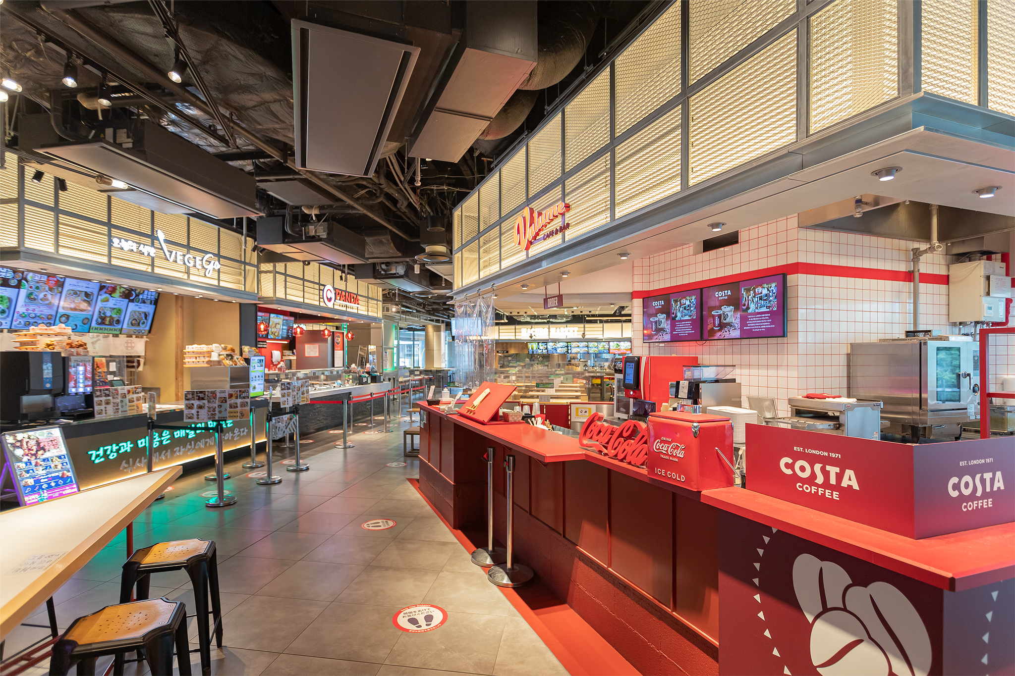 1층 남쪽은 홋카이도에서 오키나와까지 일본 전 지역의 다양한 요리를 맛볼 수 있는 시부야 요코초(恵比寿横丁)가 있습니다. 시부야 요코초는 거리에서 술과 음료를 마실 수 있는 포장마차, 비어가든 느낌이 들며 저녁이 되면 이곳을 찾는 사람들로 불야성을 이룹니다. 일본 전국의 소울 푸드를 맛볼 수 있어, 오키나와, 규슈, 오사카, 홋카이도 등 17곳의 일본요리 전문점과 한국과 중국요리 전문점도 각각 위치해 있습니다.