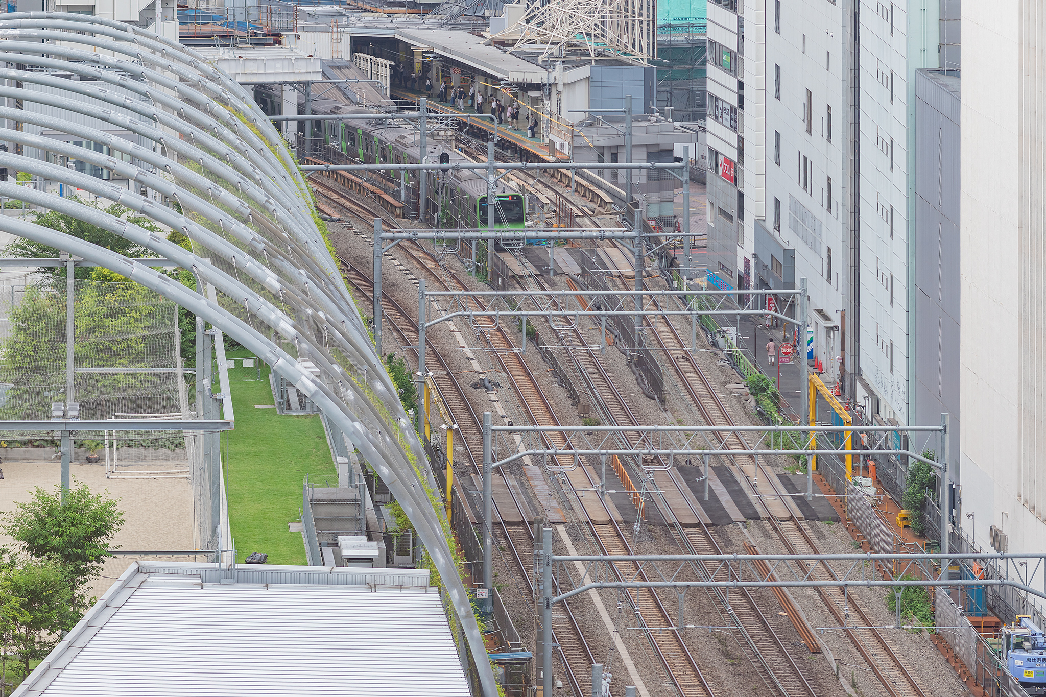 오른쪽은 JR열차가 다니는 철로가 있어 다양한 풍경을 감상할 수 있습니다.