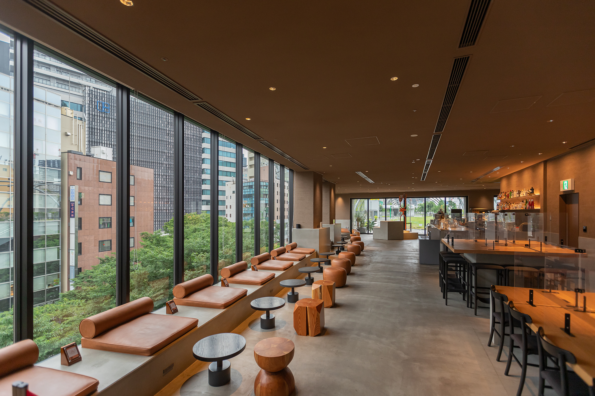 로비의 카페는 편히 기대어 쉴 수 있는 공간과 작업을 하기 좋은 워크스테이션 공간으로 나뉩니다.
