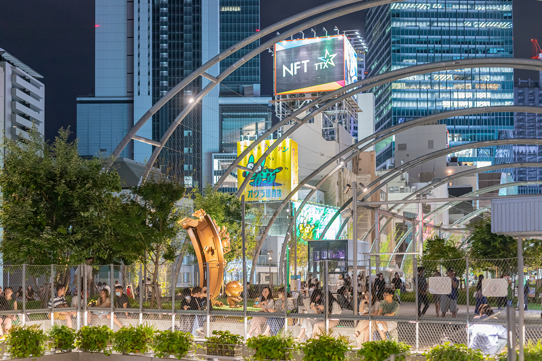 공원 중앙의 스타벅스를 중심으로 많은 사람들이 모이는 도쿄의 핫 플레이스