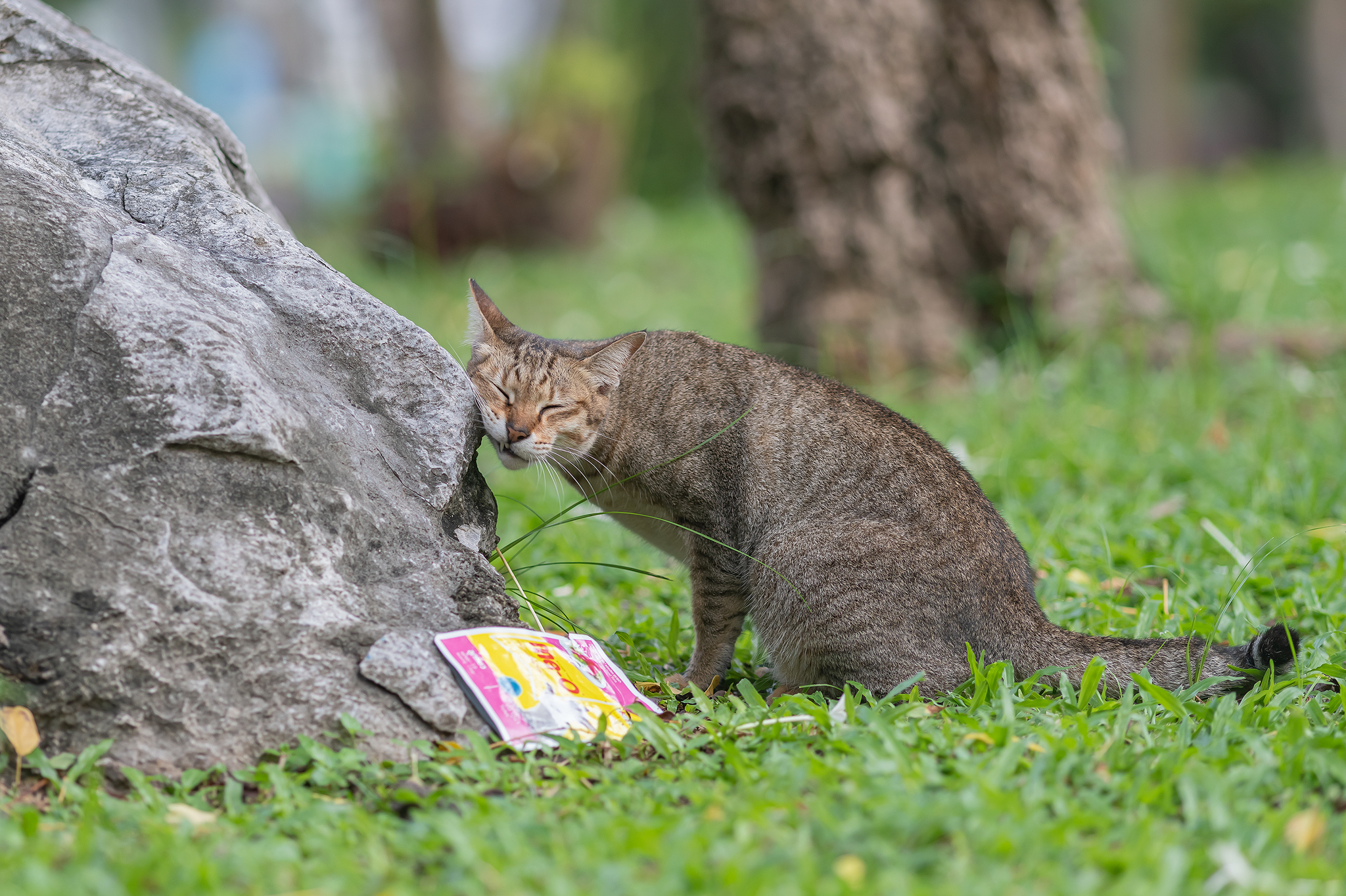 공원에 들어가자 마자 바로 고양이를 만날 수 있었고 처음 만난 고양이는 돌에 얼굴을 부비던 고등어 냥이입니다.