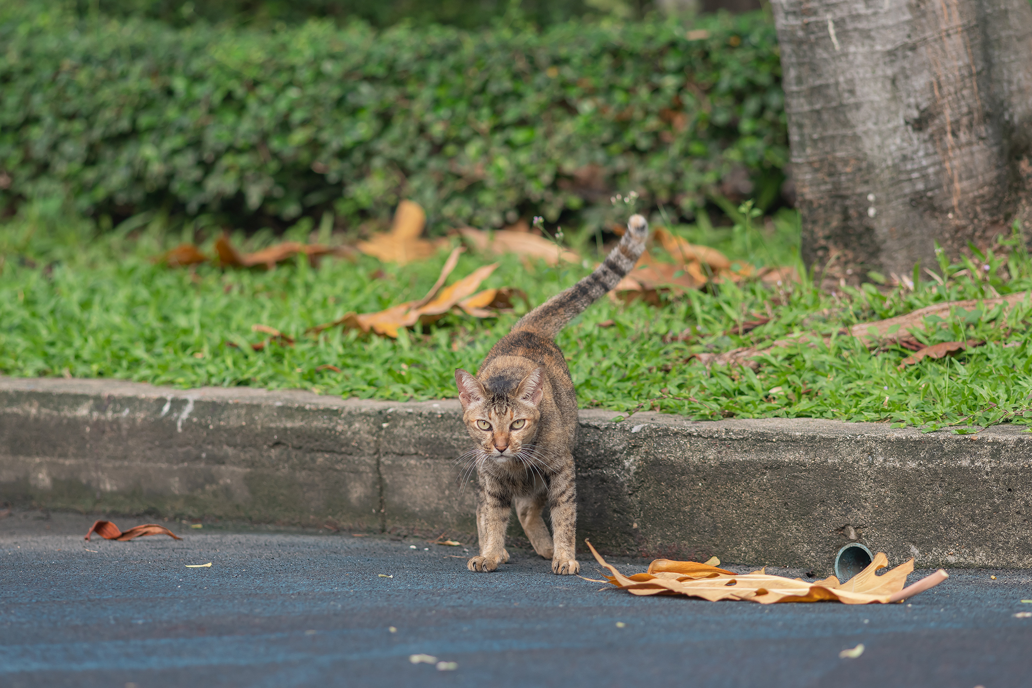 낮에는 너무 더워 다들 그늘에 숨어 있고 밤에는 어둡고 빠르게 움직이기 때문에 고양이를 찾기가 쉽지 않습니다.