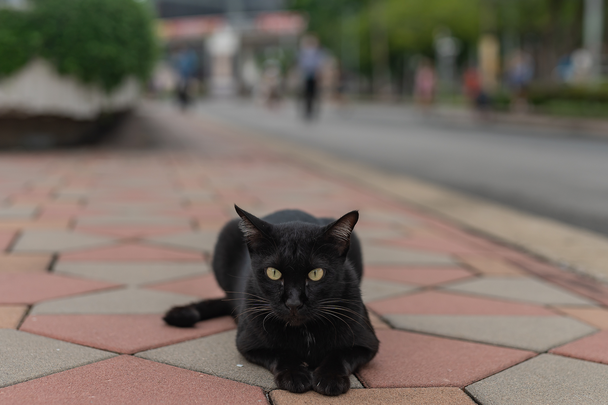 룸피니 공원에 고양이를 구경하러 온 것 처럼 고양이도 사람을 구경하고 있습니다.