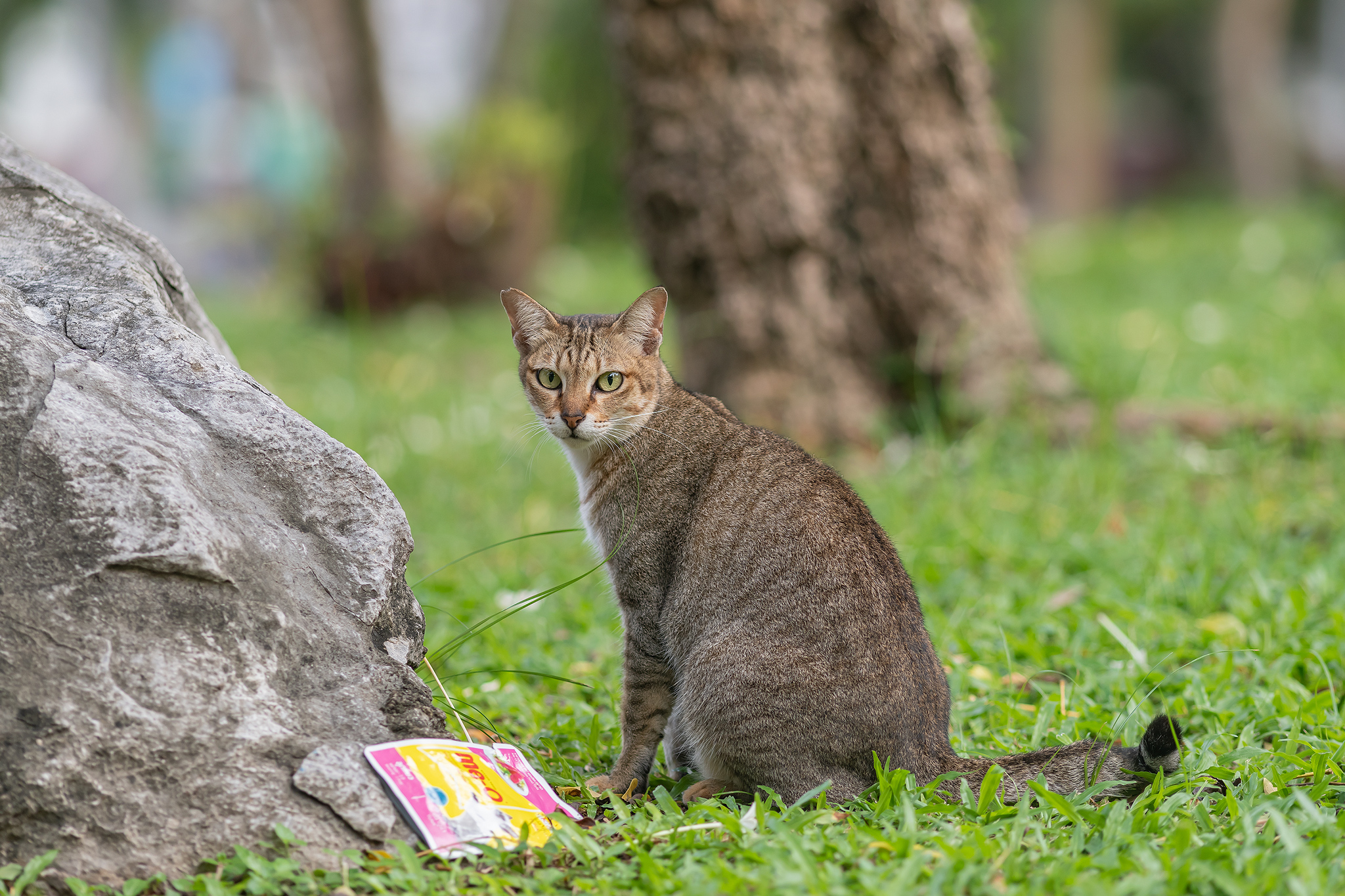 룸피니 공원에는 고등어 무늬의 고양이들이 많습니다.
