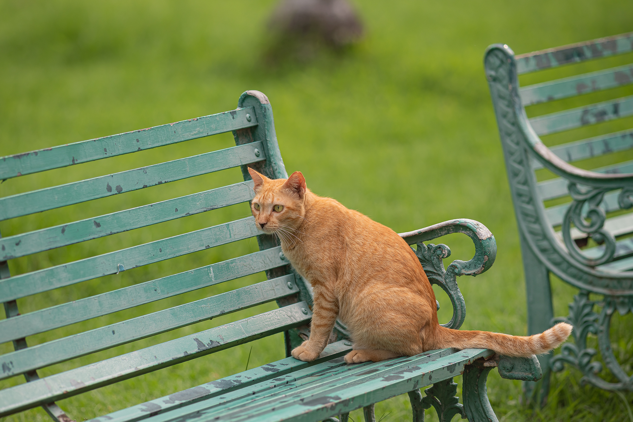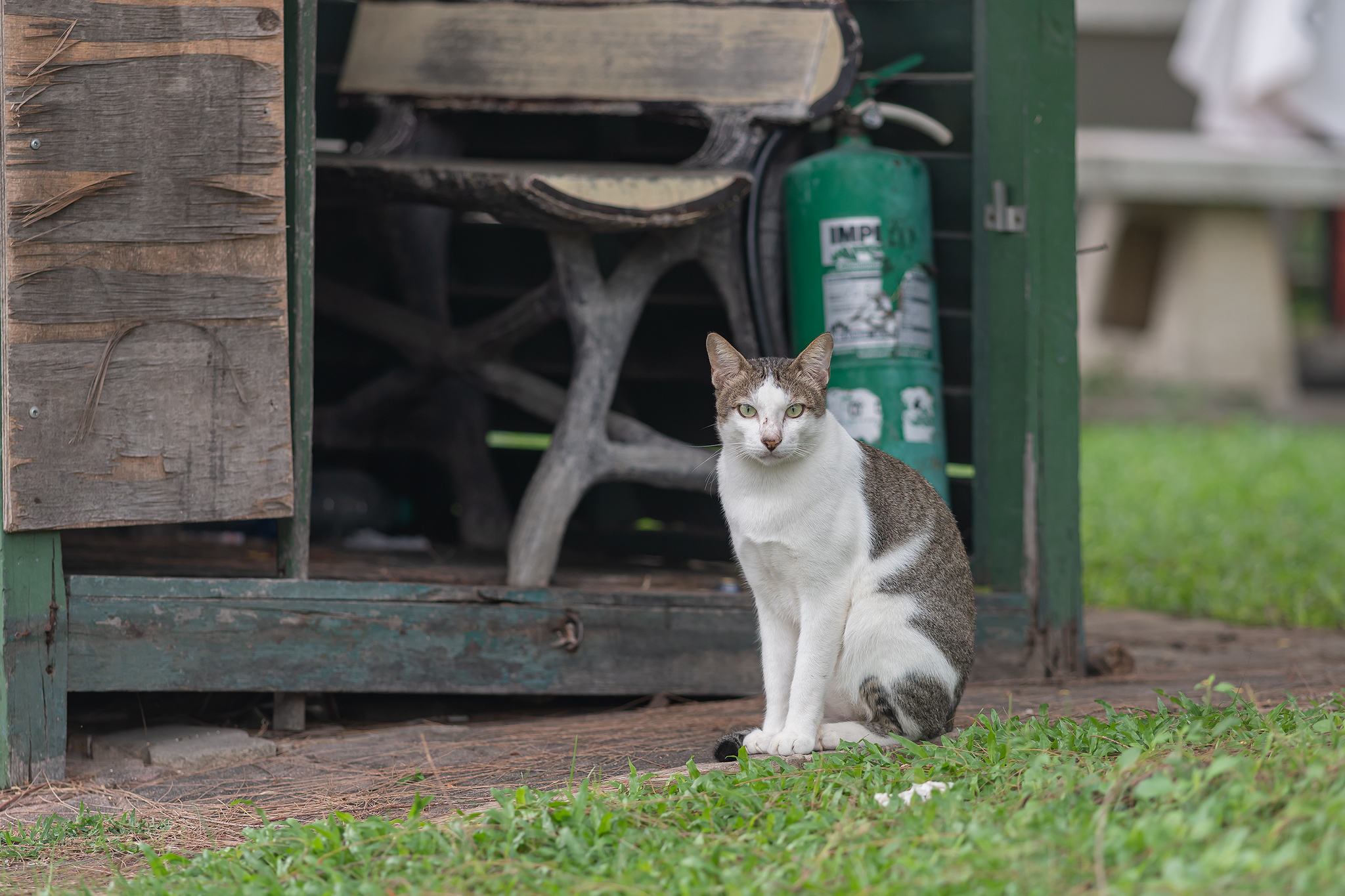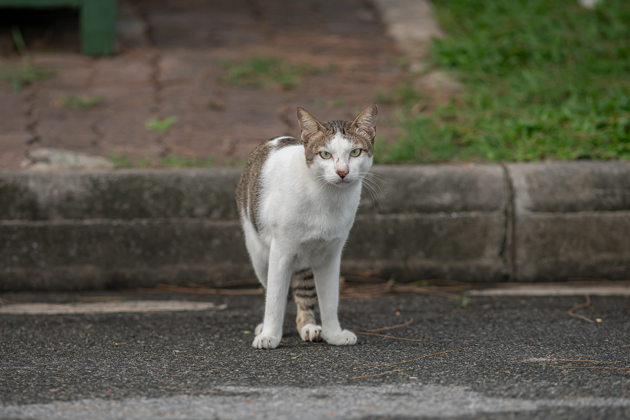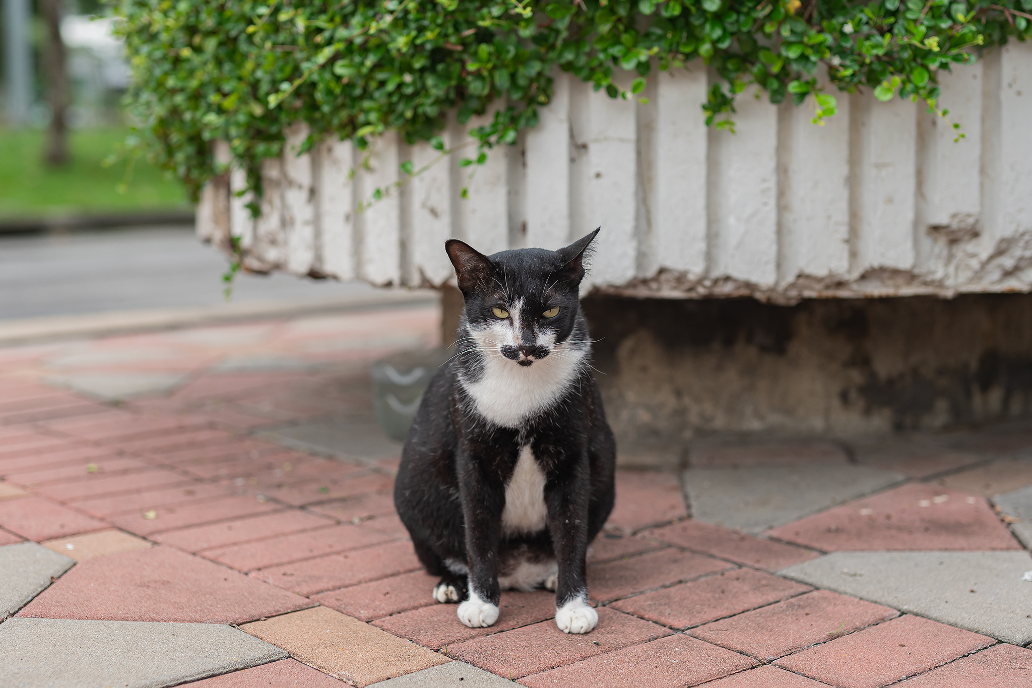 멀리 얌전한 자세의 이쁘장한 고양이가 보입니다.