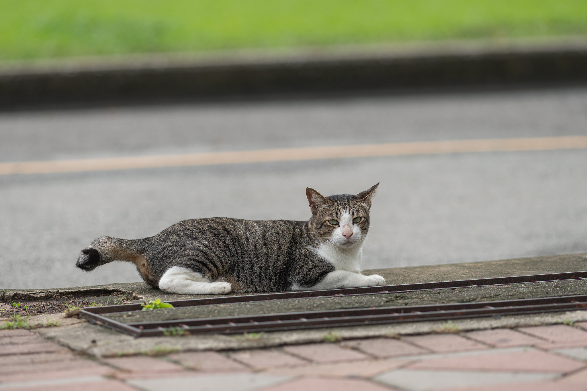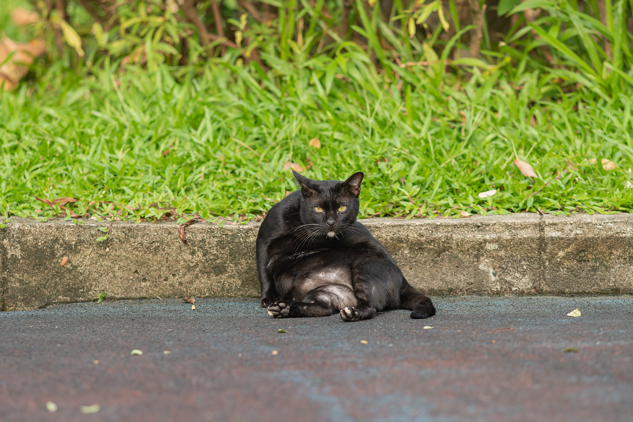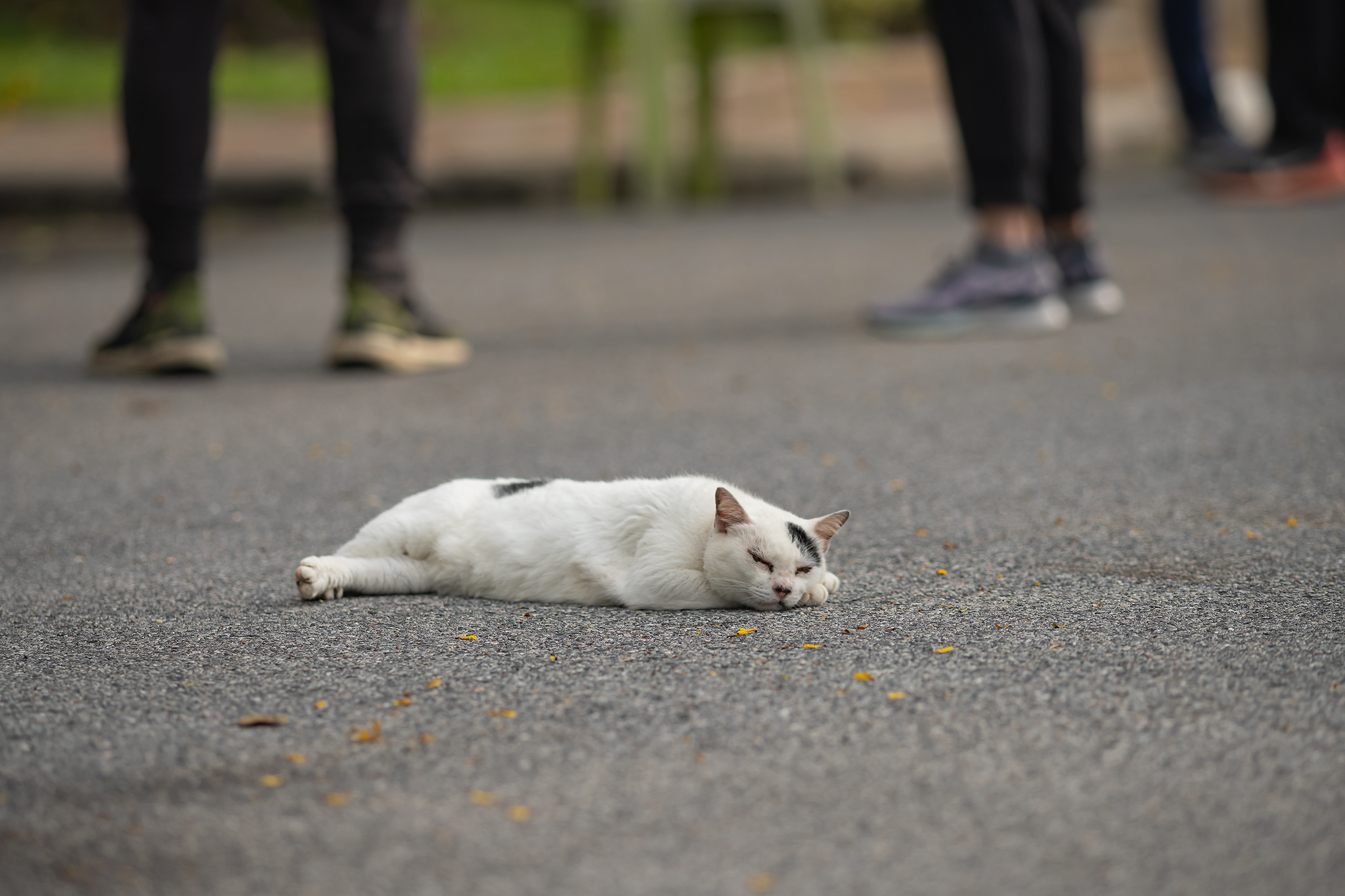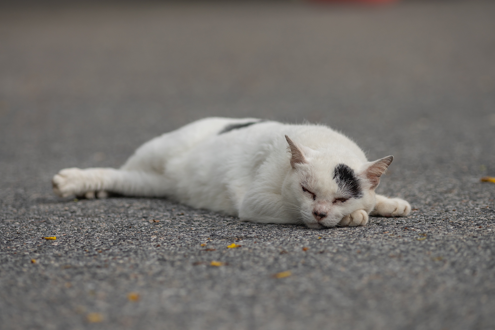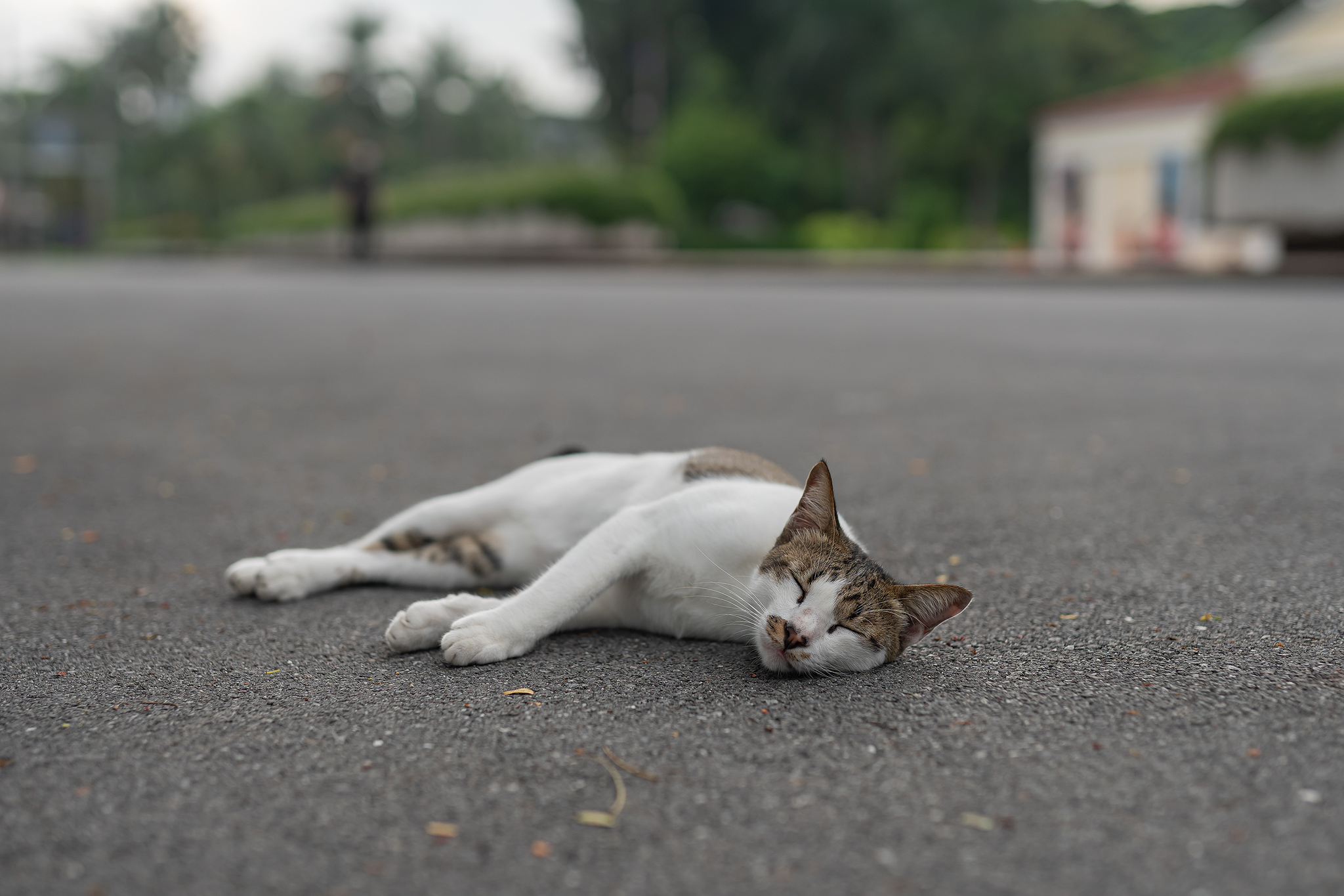 바로 앞에는 더워서인지 졸려서 인지 아스팔트에 쓰러져 있는 고양이가 있었습니다.
