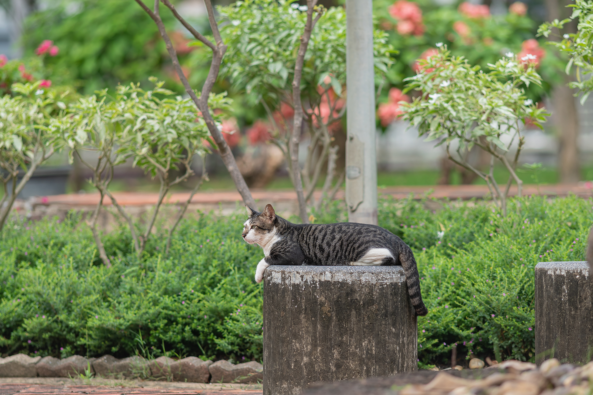 룸피니 공원의 고양이는 곳곳에 제법 많이 자리를 잡고 있어