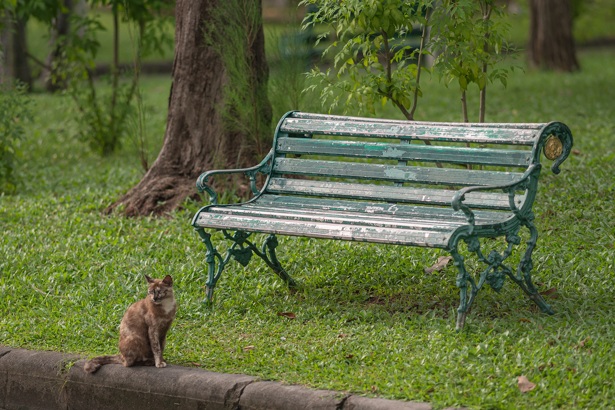 여행 중 하루는 고양이를 관찰하며 함께 여유로운 시간을 보내기 위해 룸피니 공원을 찾았습니다.