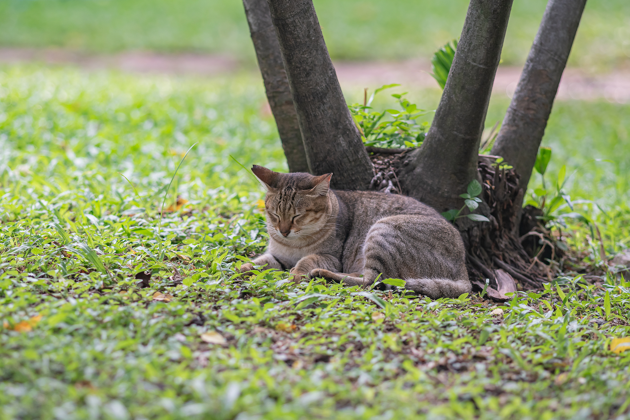 공원을 나오면서 마지막으로 나무 앞에 졸고 있는 고양이를 만났습니다.