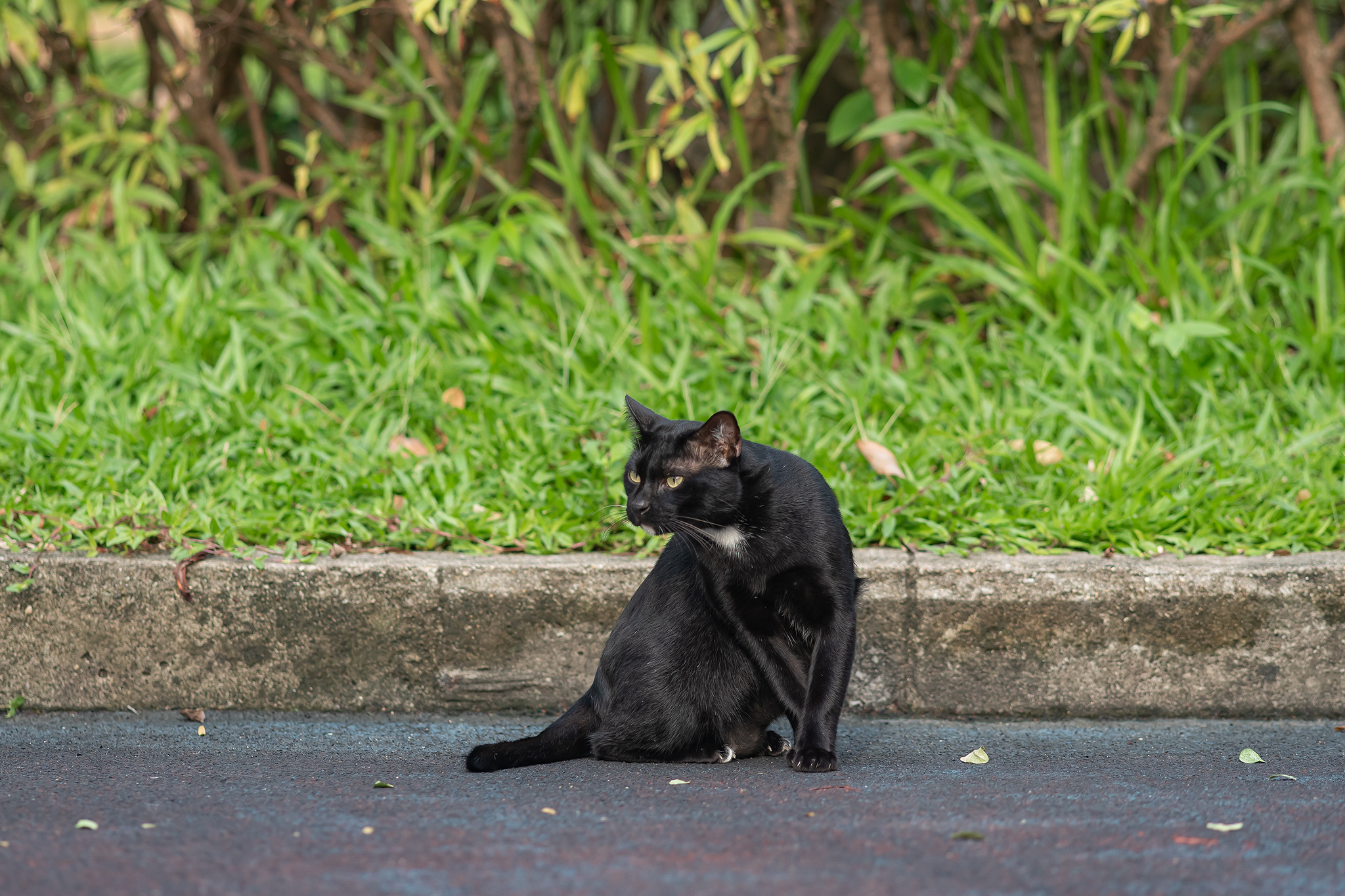 낮에는 너무 더워 다들 그늘에 숨어 있고 밤에는 어둡고 빠르게 움직이기 때문에 고양이를 찾기가 쉽지 않습니다.