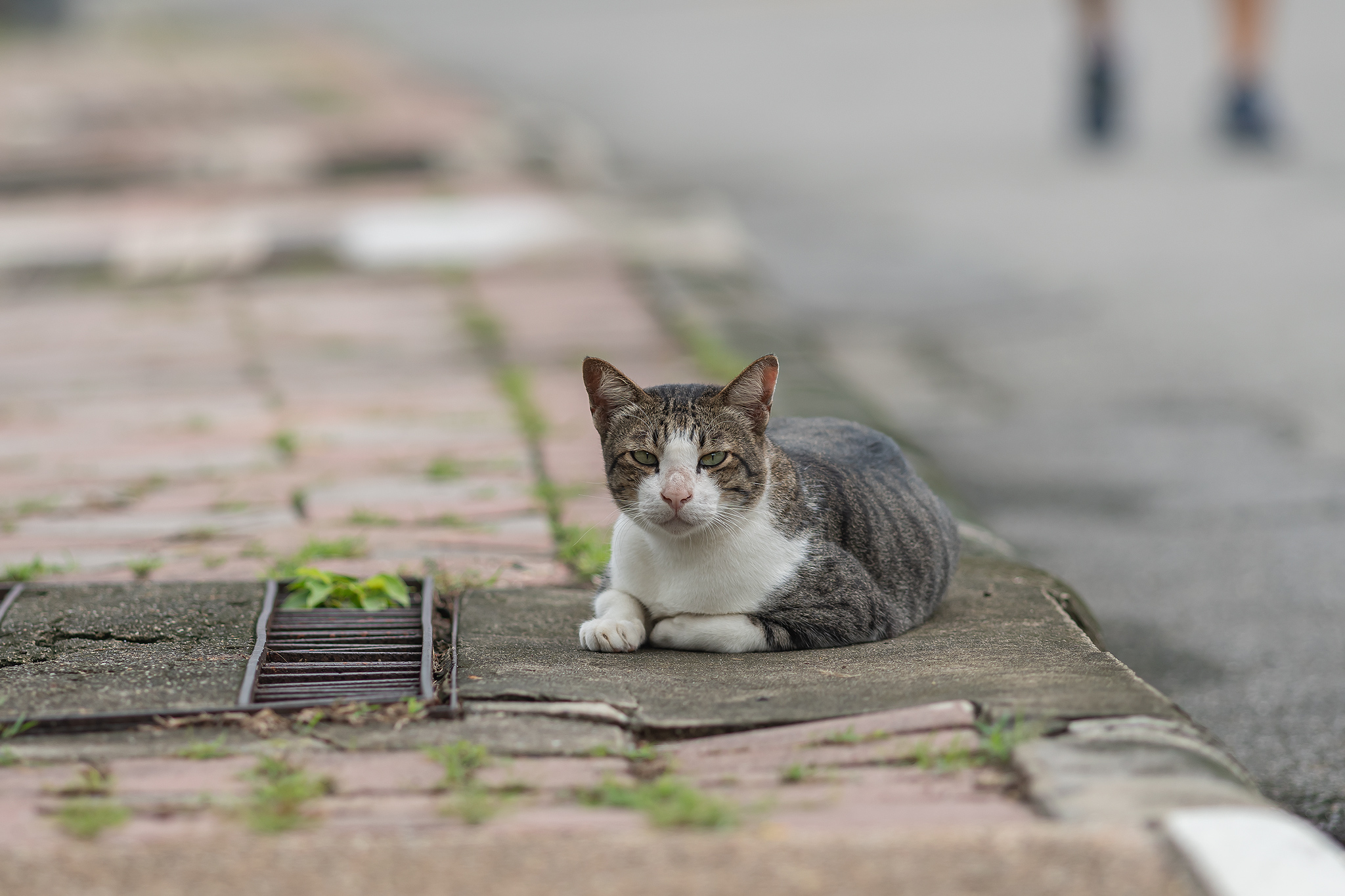 사진을 찍자 포즈를 취해준 고등어 고양이 귀가 살짝 짤려 있는 것을 보면 중성화 수술을 받은 것도 같습니다.