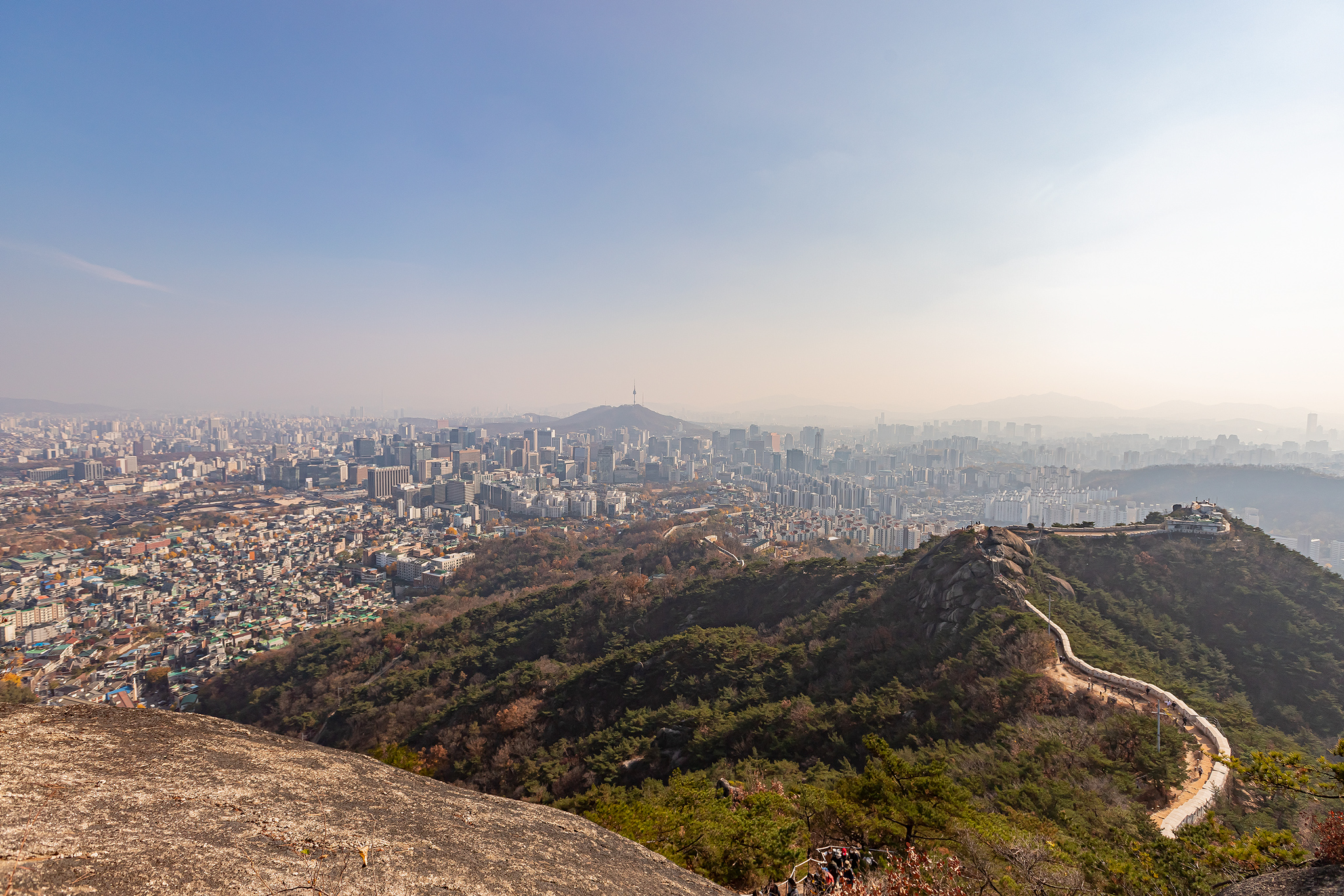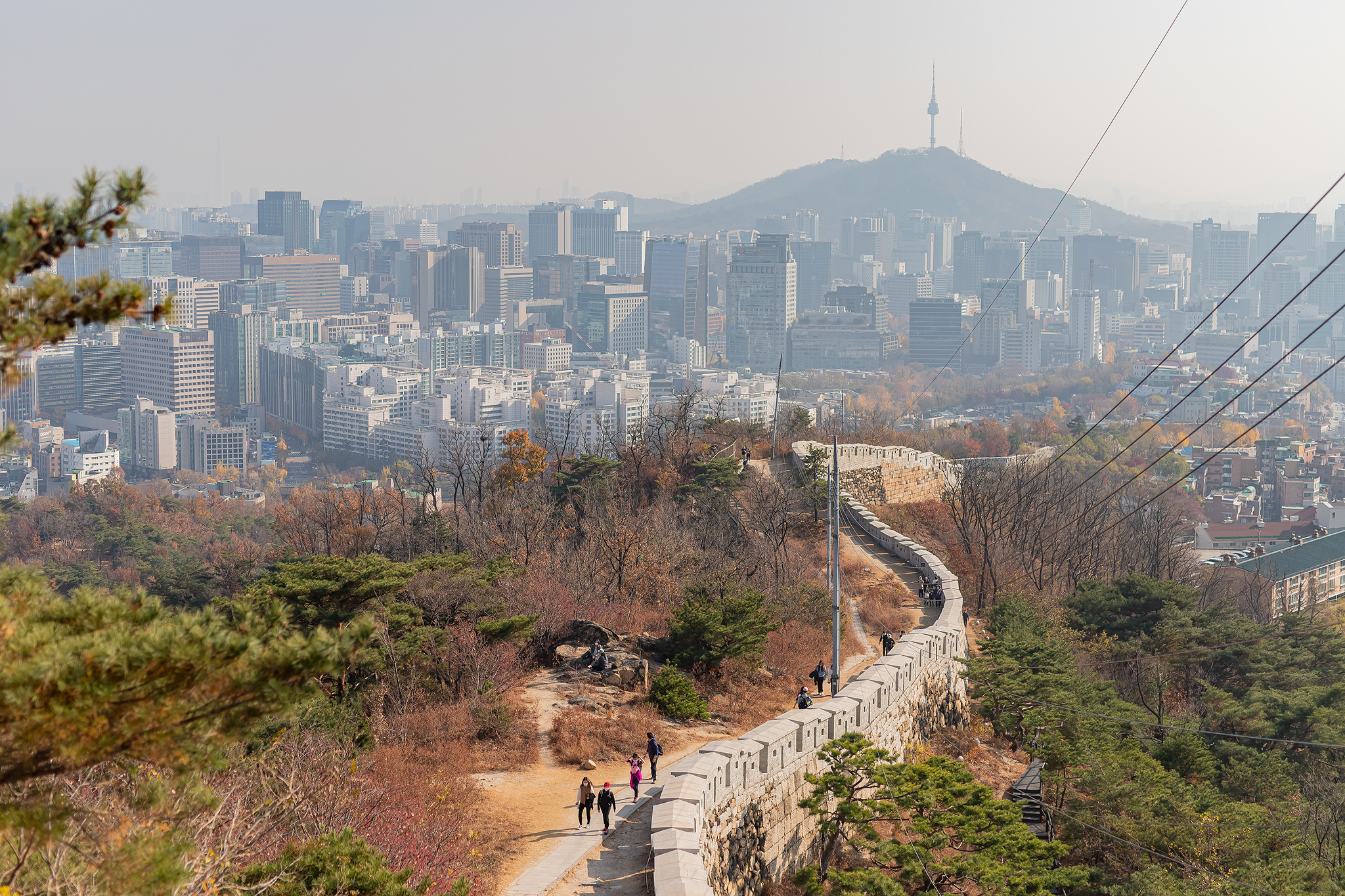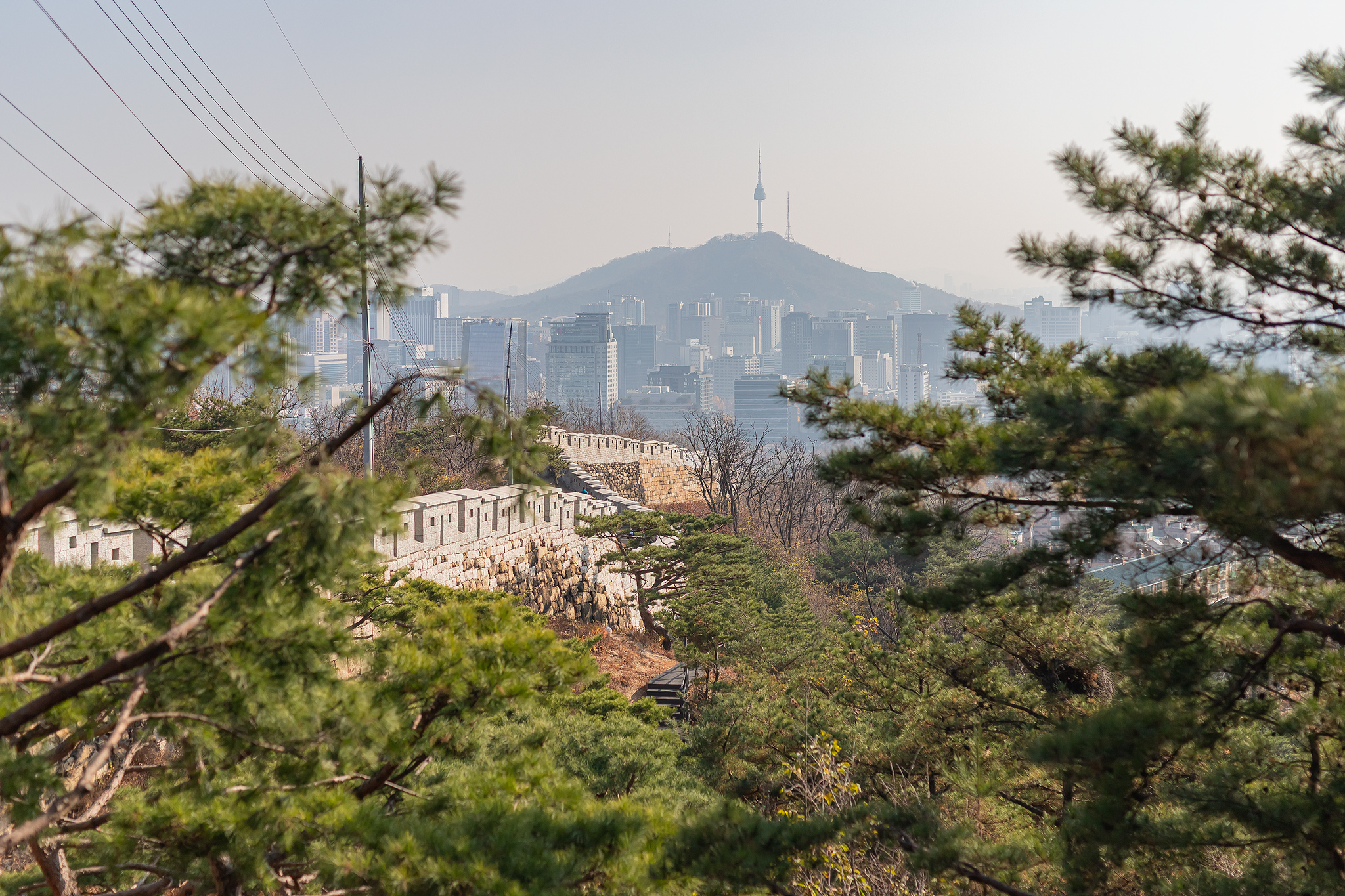 성벽과 함께 멋진 서울의 풍경을 감상할 수 있습니다.