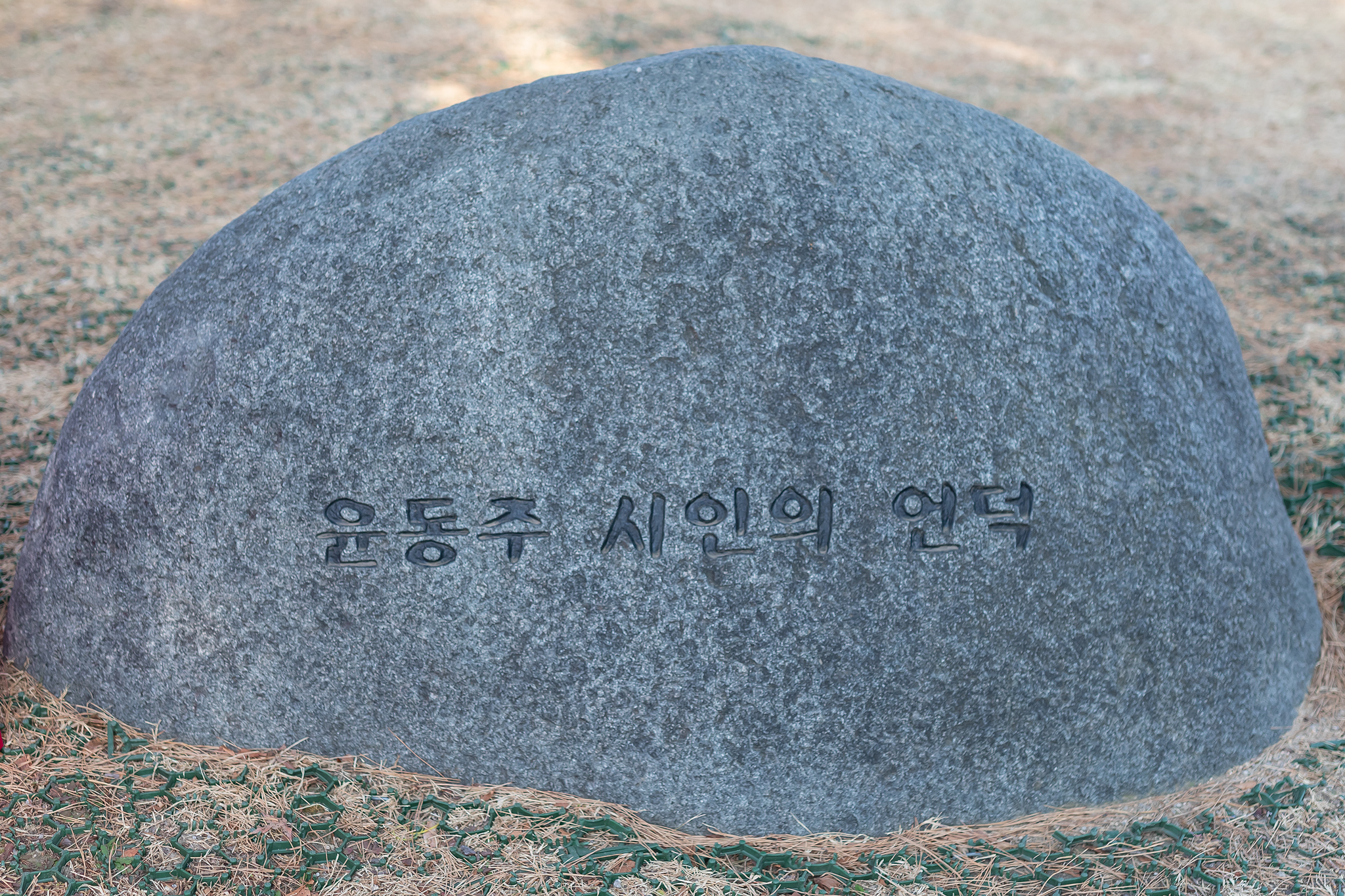 윤동주 시인의 언덕과 그가 지은 서시를 세겨둔 바위