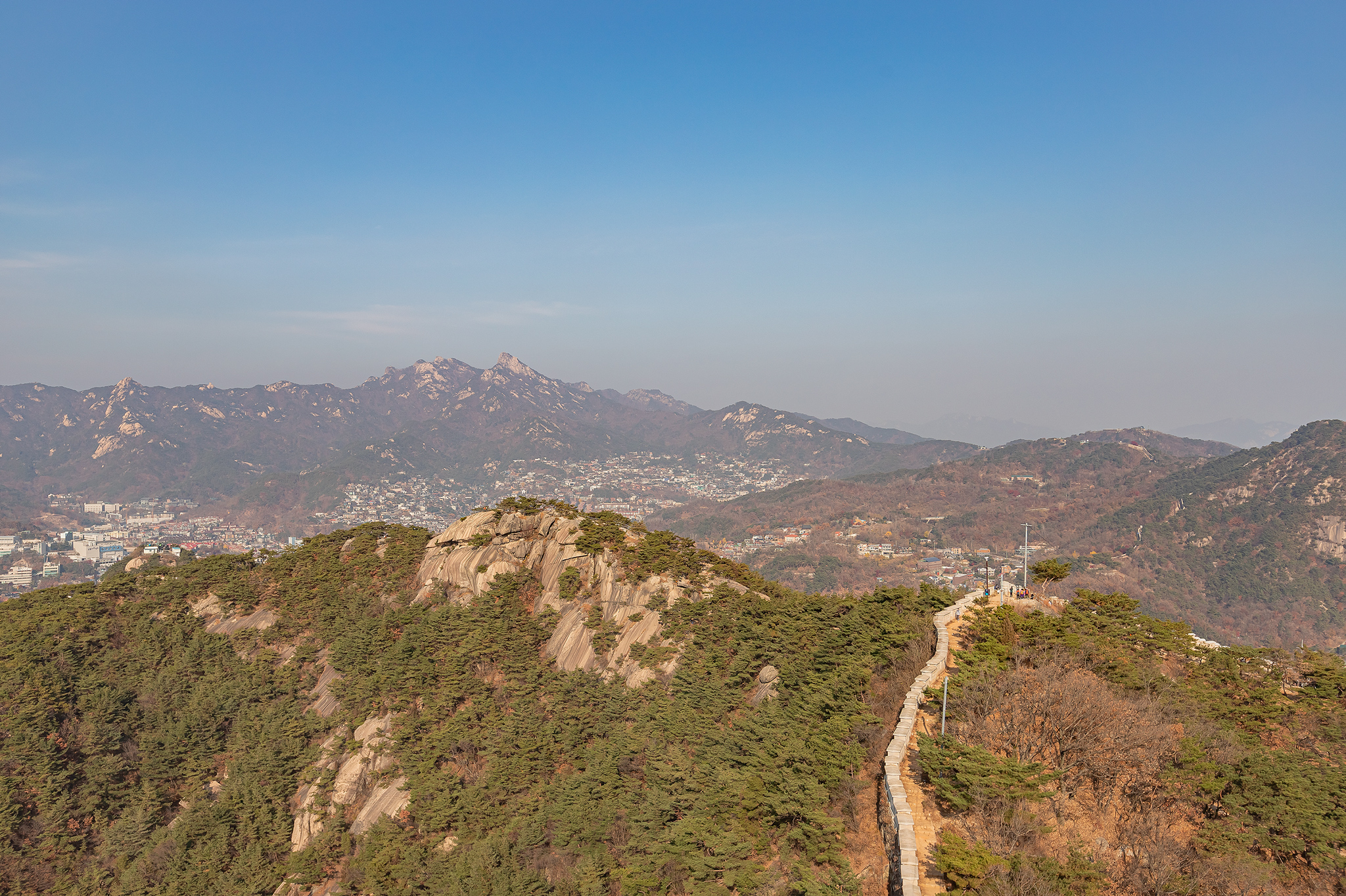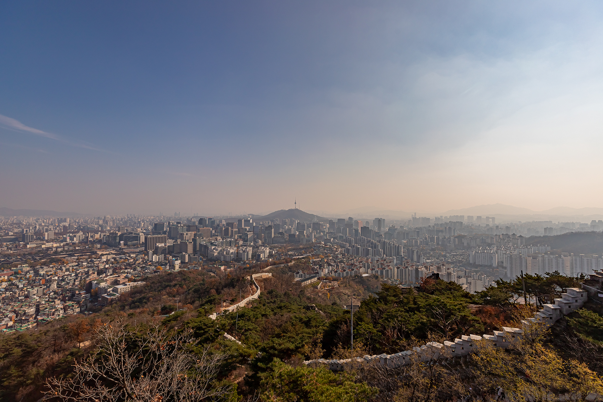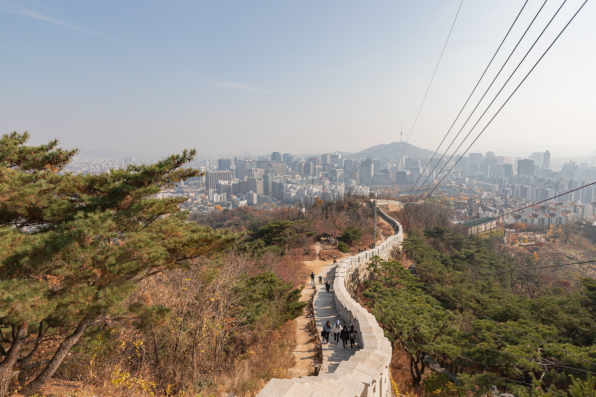 성벽과 함께 멋진 서울의 풍경을 감상할 수 있습니다.