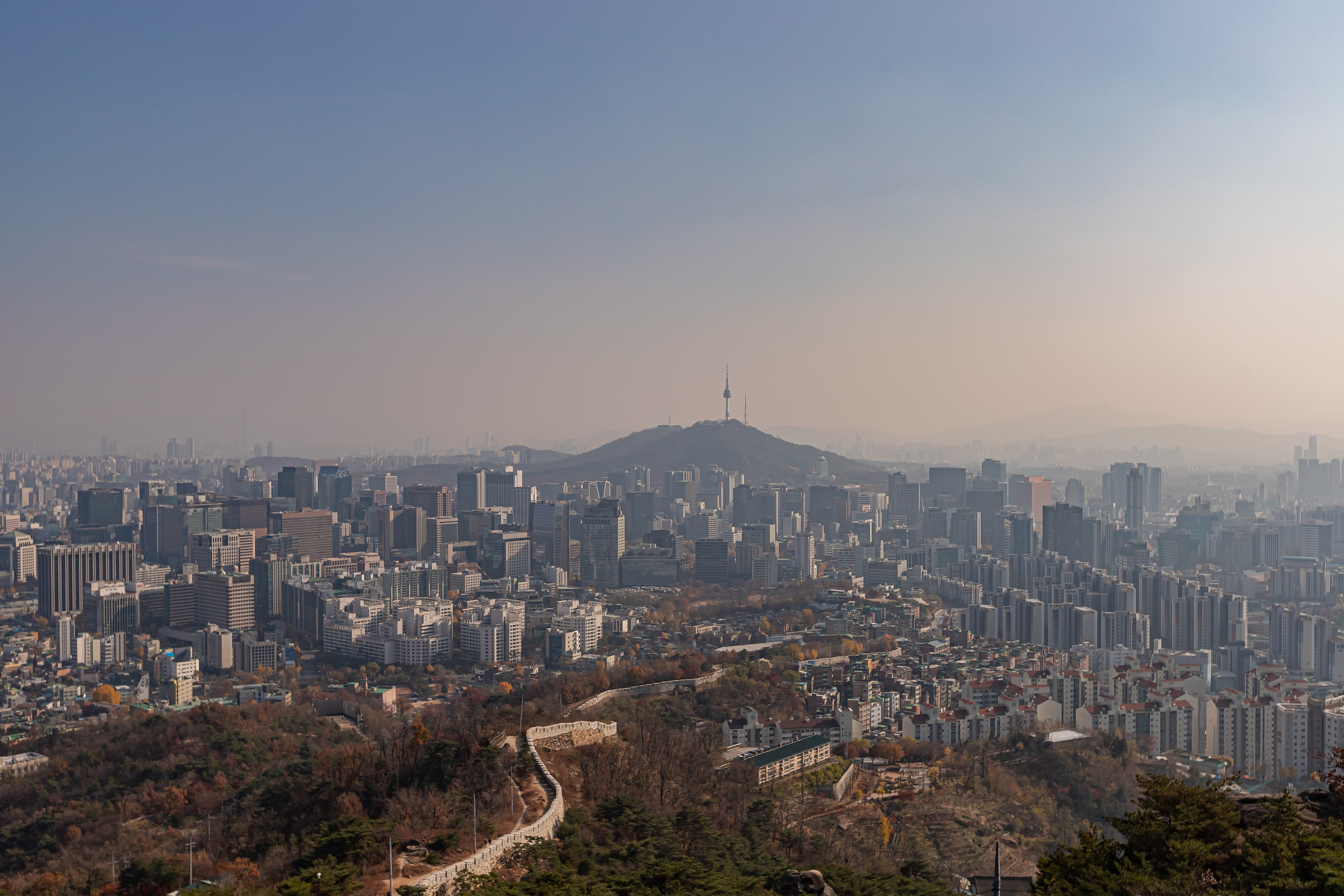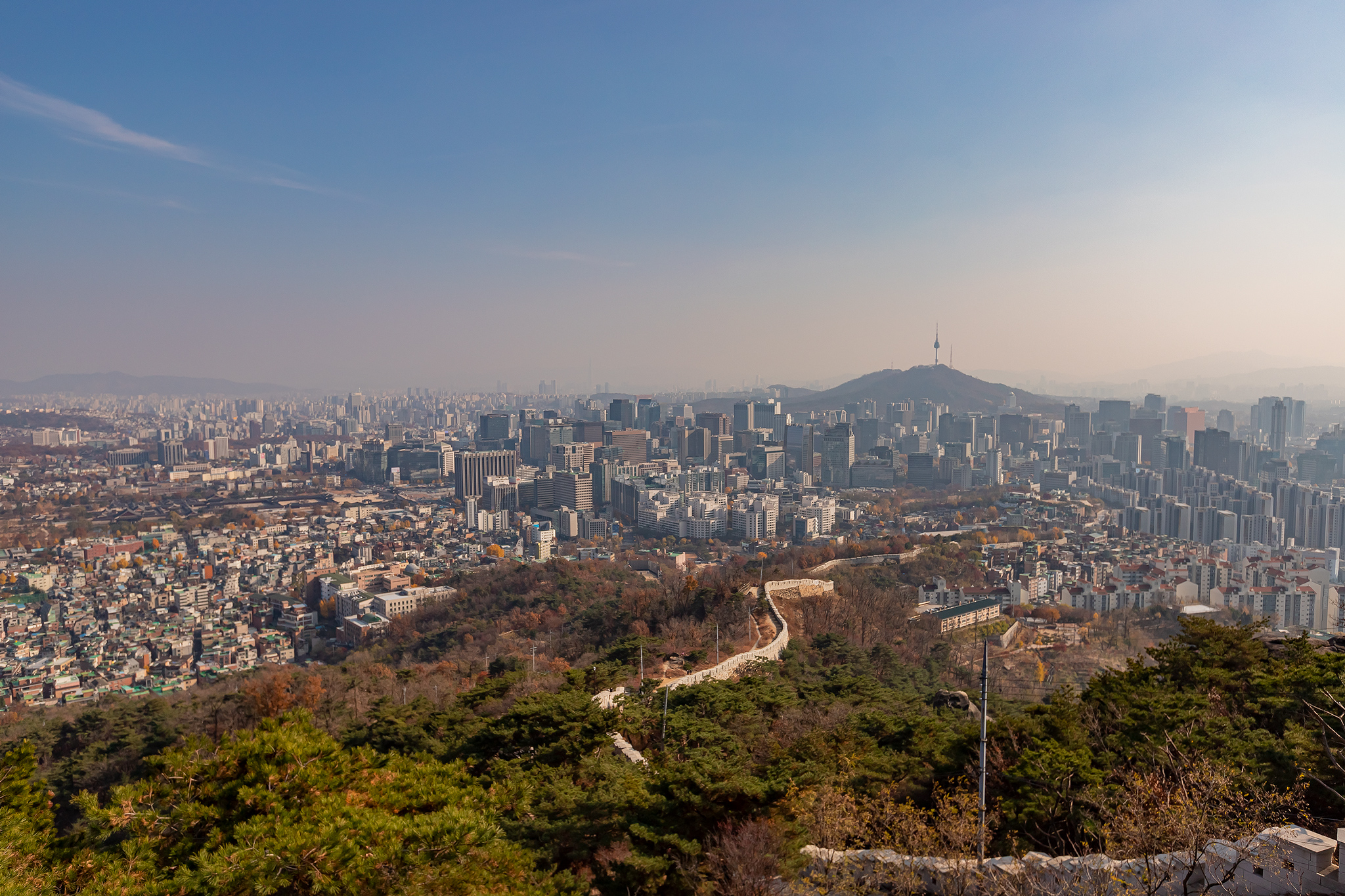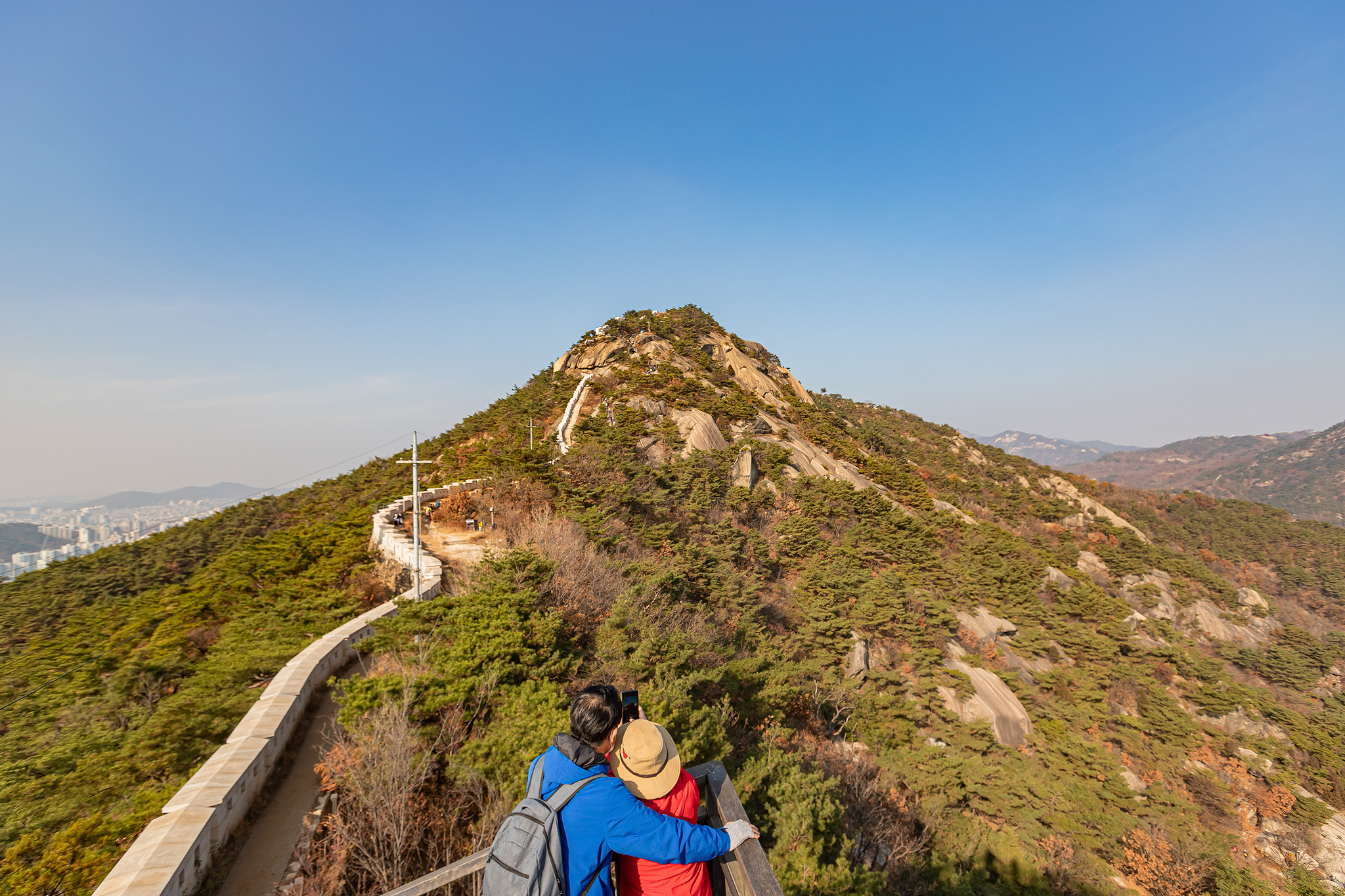 성벽과 함께 멋진 서울의 풍경을 감상할 수 있습니다.