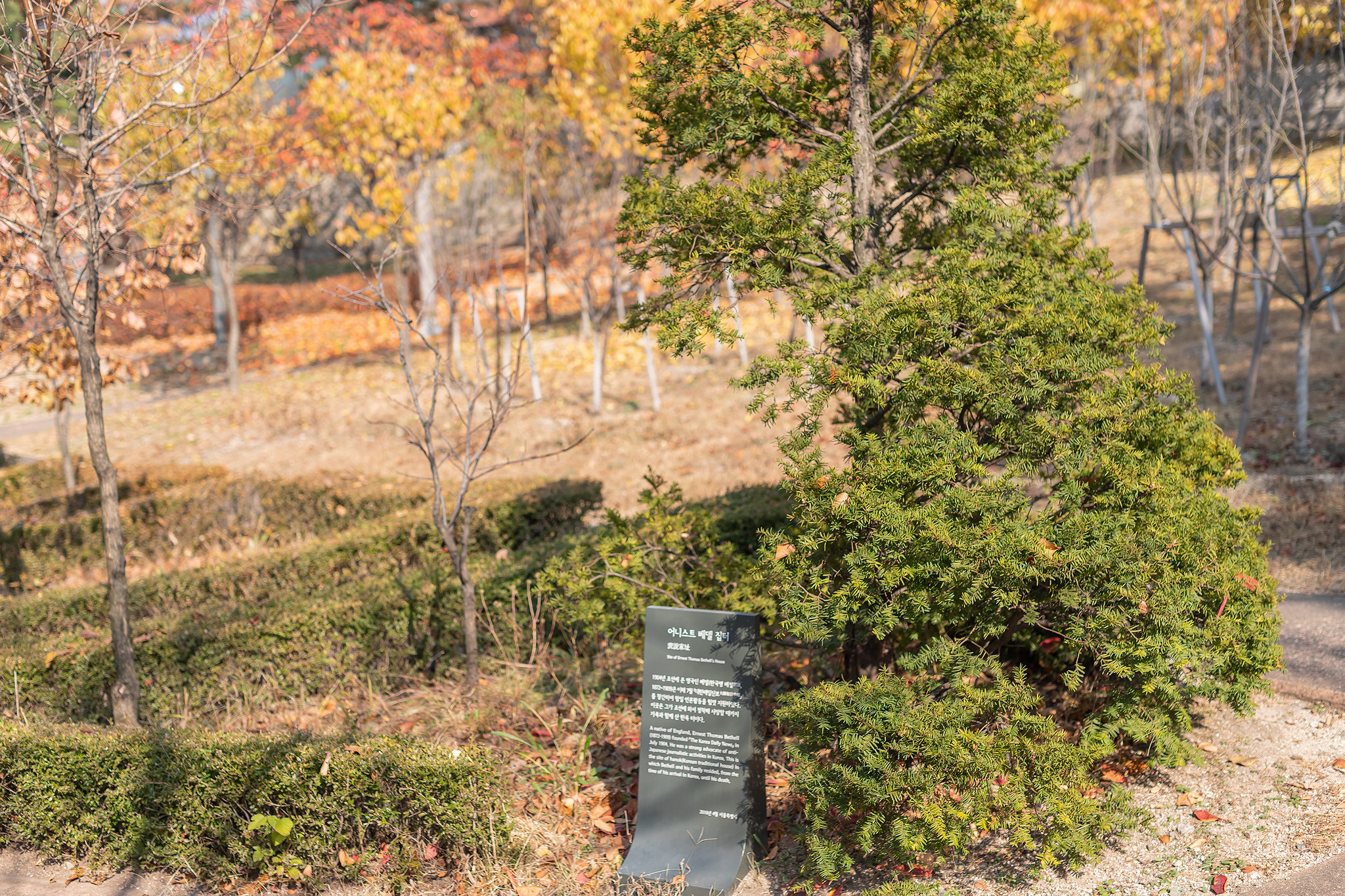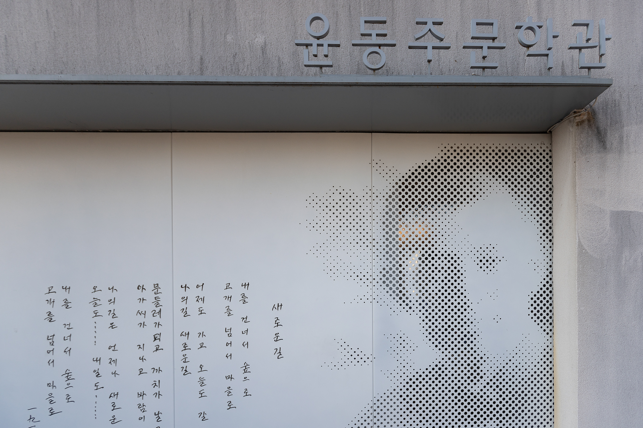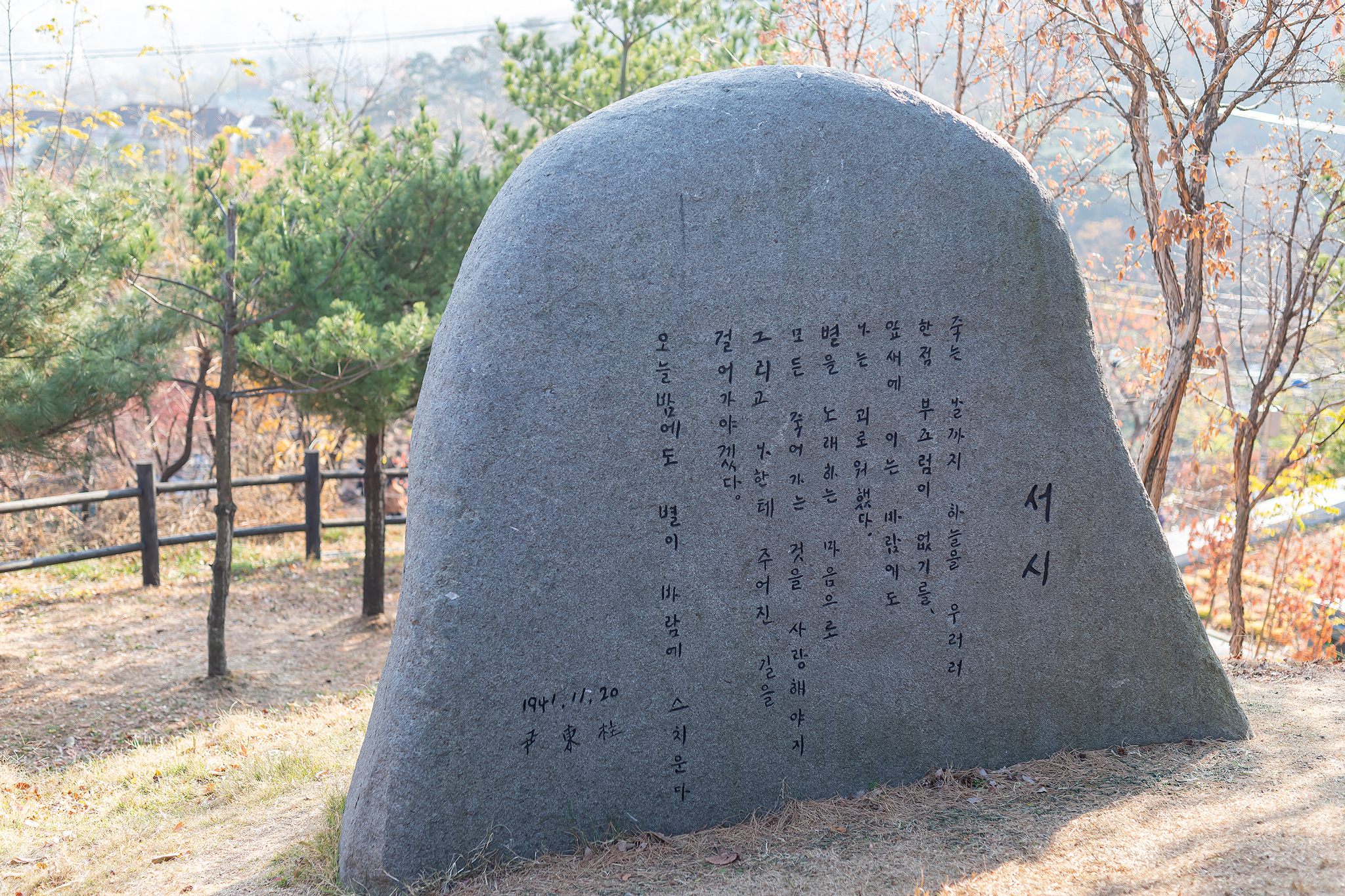윤동주 시인의 언덕과 그가 지은 서시를 세겨둔 바위