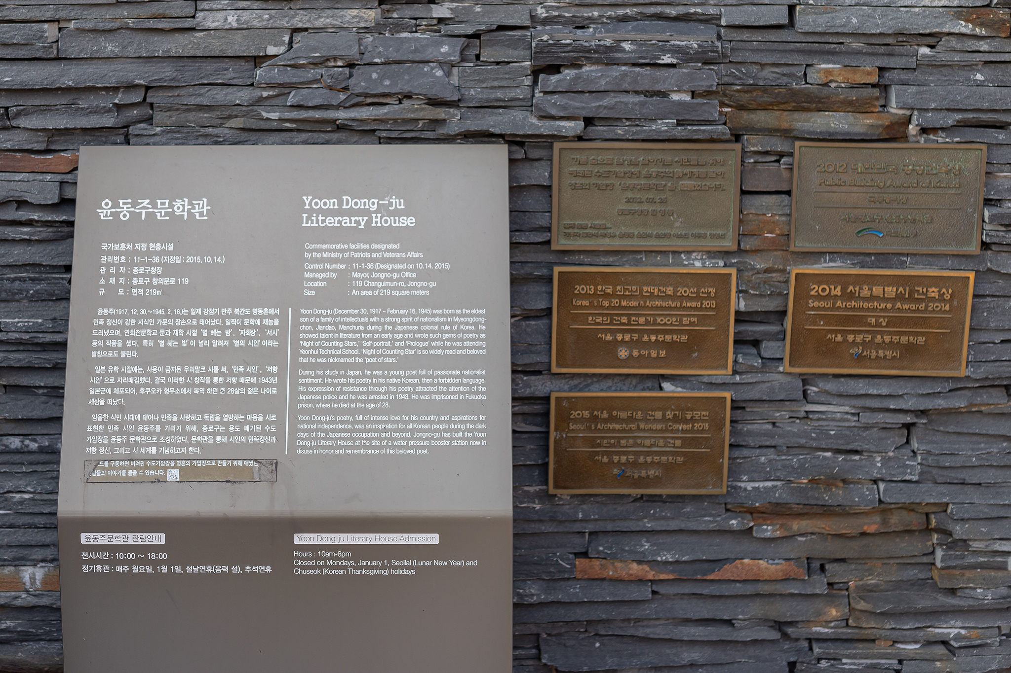 윤동주 시인의 언덕은 윤동주 시인의 문학정신을 기리기 위해 조성한 공원으로 인왕산 자락 서쪽 끝, 창의문 부근에 있습니다. 윤동주는 연희전문학교 재학 시절 종로구 누상동에서 하숙했는데, 그가 이 일대를 거닐며 시상(詩想)을 가다듬었을 것으로 보아 이 자리에 윤동주 시인의 언덕을 조성하였습니다. 언덕 위에 그의 대표작 ‘서시’를 새긴 커다란 시비가 있으며, 가까이에 윤동주문학관도 있습니다.