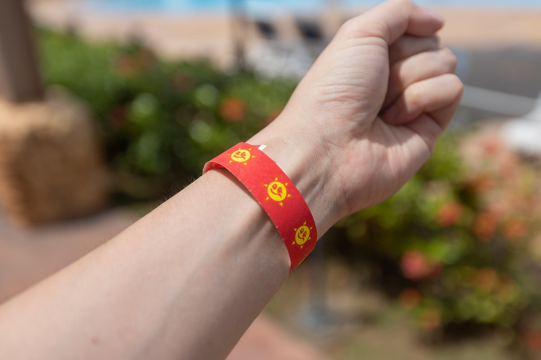 숙박객은 워터파크를 무료로 이용할 수 있으며 입장용 팔찌를 받았습니다.