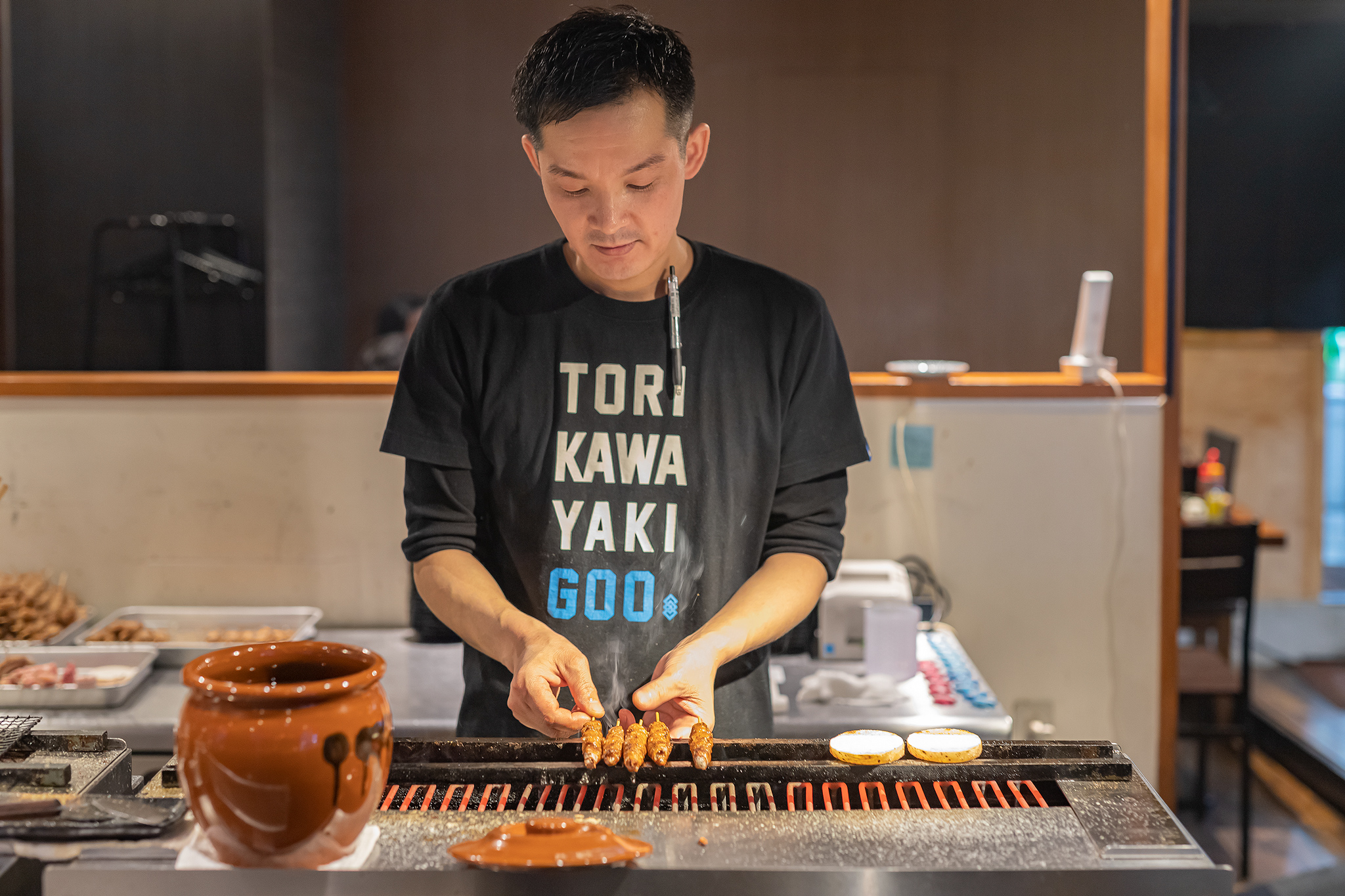 닭꼬치에 진심인 점장님이 열심히 구워 줍니다.