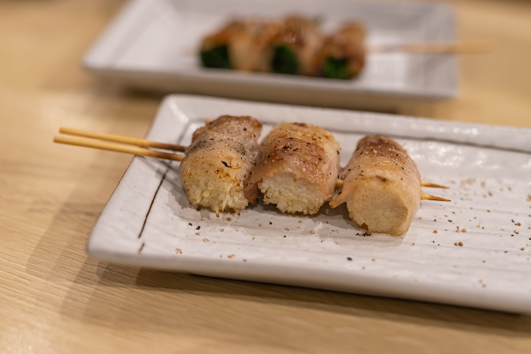 기름기 많은 닭 껍질을 꼬치에 돌돌말아 양념에 재우고 여러번 구워내어 기름이 쏙 빠져 바삭하게 먹을 수 있습니다. 이곳의 토리카와는 바삭하지만 부드러움도 남아있었습니다.