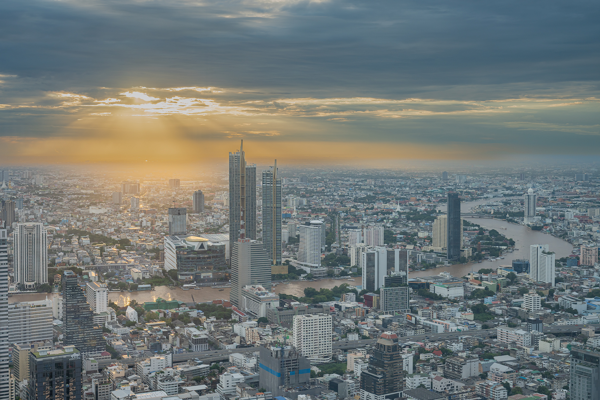 짜오프라야 강과 그 주변의 고층 빌딩들