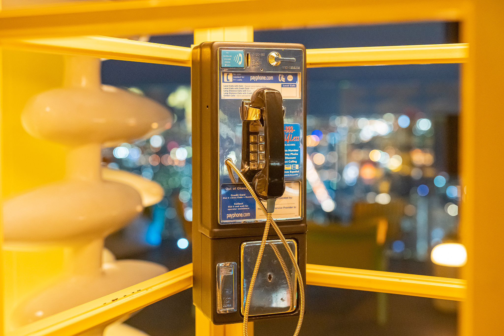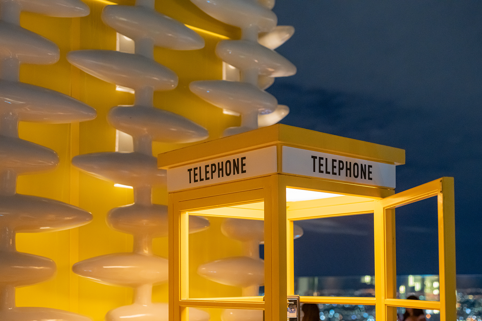 다시 엘리베이터를 타고 올라가면 루프탑이 있고 입구에는 귀여운 전화 부스와