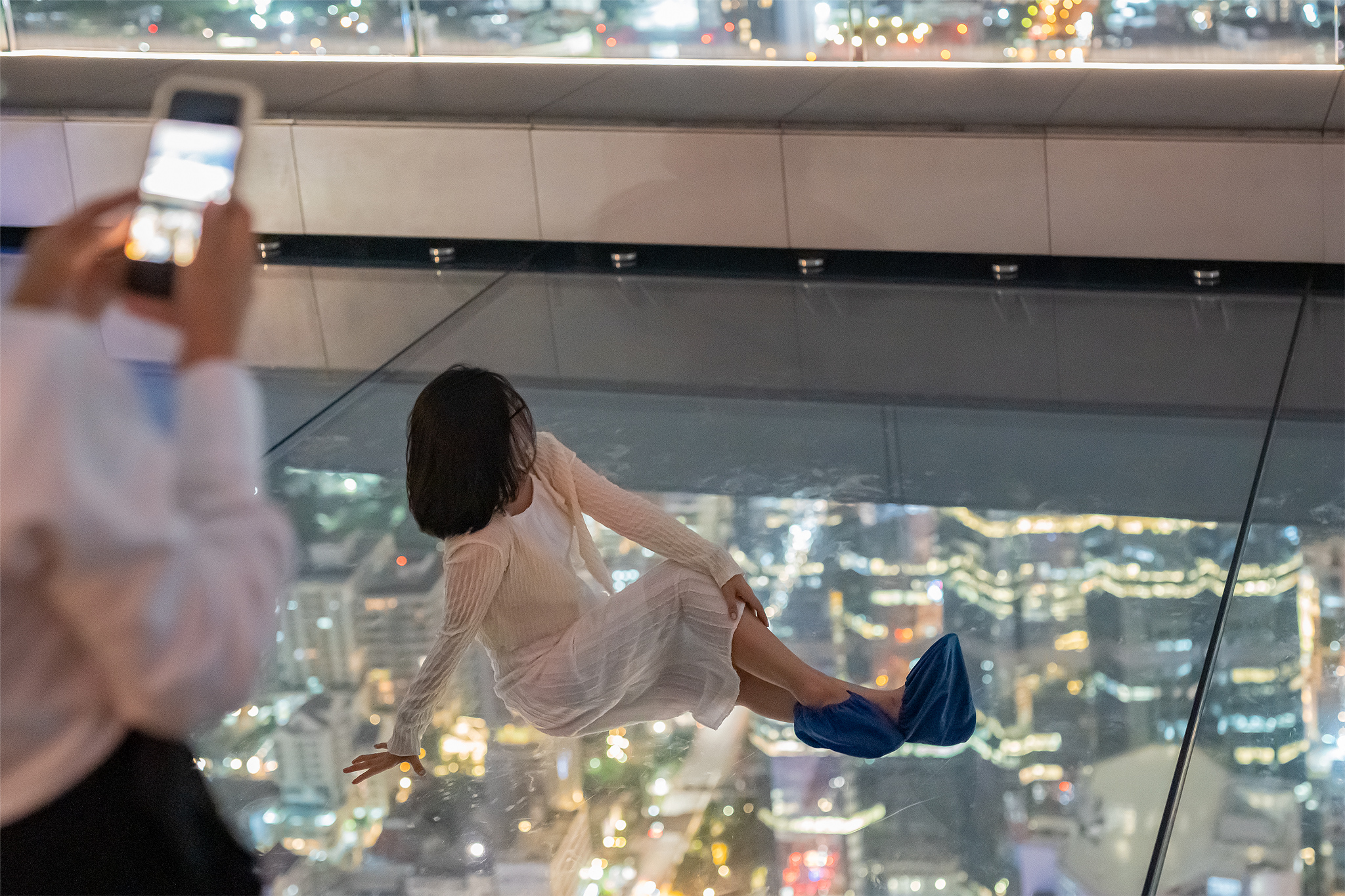 신발에 발 토시를 씌우고 들어갈 수 있는 투명 유리의 스카이 워크가 있는데 특별히 이쁜 사진이 나오지는 않고 스릴만 조금 느낄 수 있을 것 같습니다.
