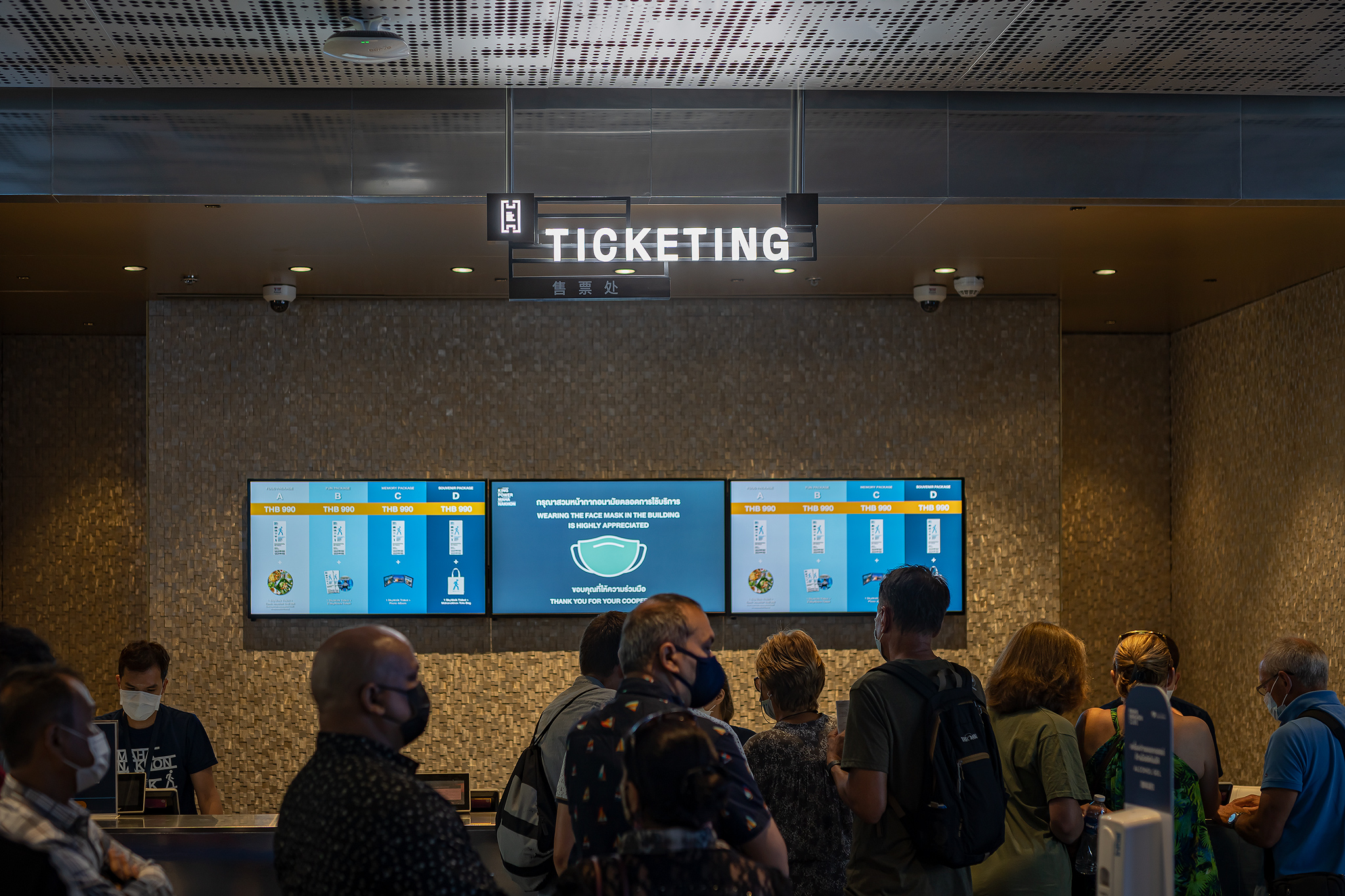 킹 파워 마하나콘 전망대는 주중에는 500바트, 주말에는 705바트이며 현장에서 티켓을 구매하거나 티켓 예약 사이트에서 구매할 수 있습니다. 티켓 예약사이트는 전망대 요금 이외에도 다양한 프로모션 요금이 있으니 잘 알아보고 구매하면 좋을 것 같습니다.