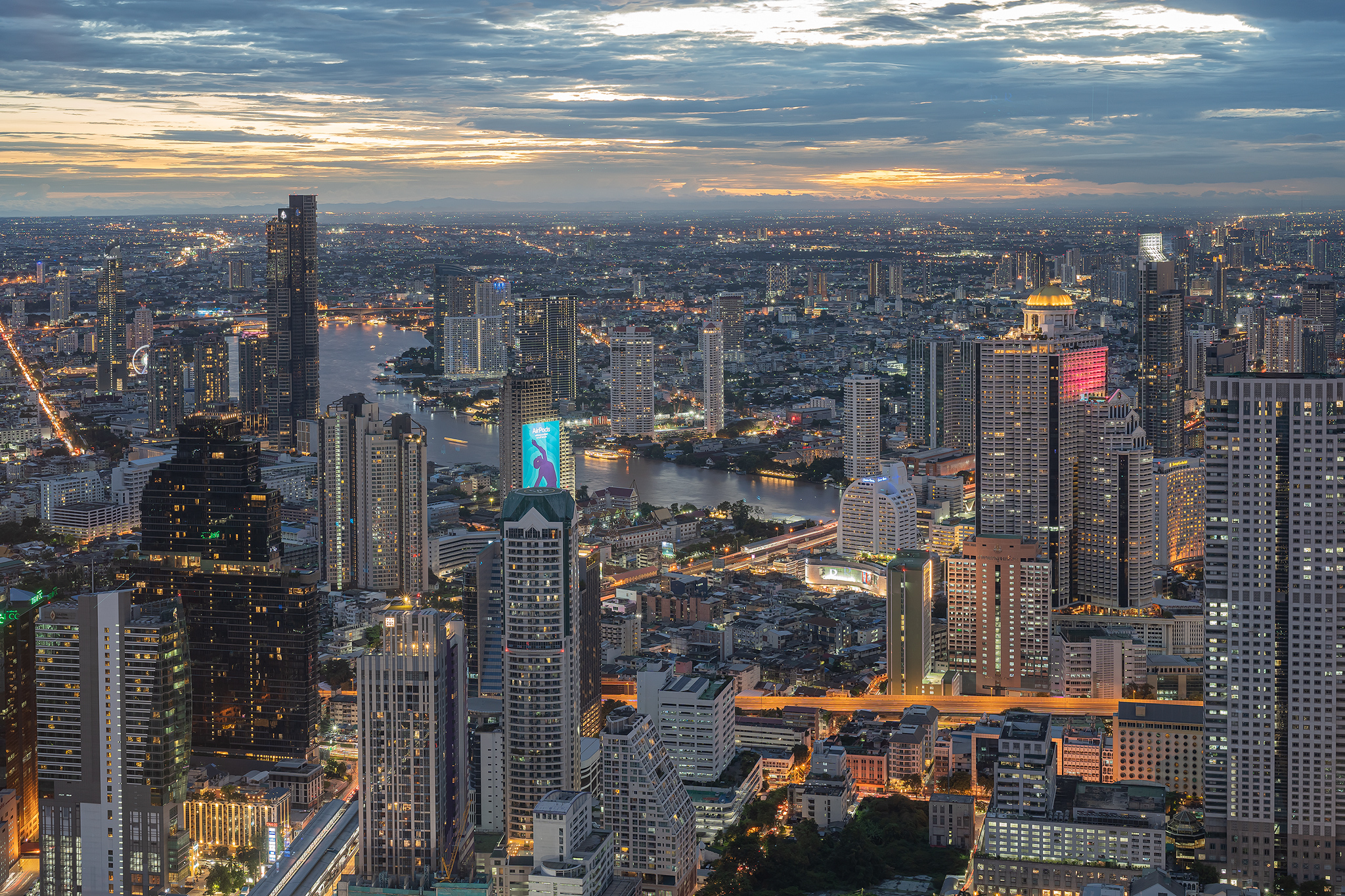 짜오프라야 강과 그 주변의 고층 빌딩들
