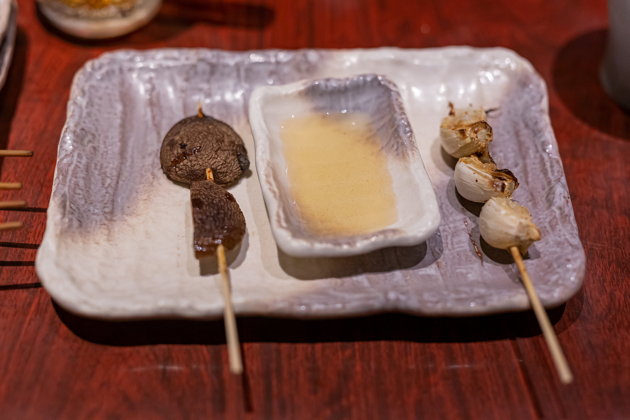 도리카와만 먹기에는 너무 기름지지 않을까 해서 표고버섯과 마늘 구이를 주문했습니다.