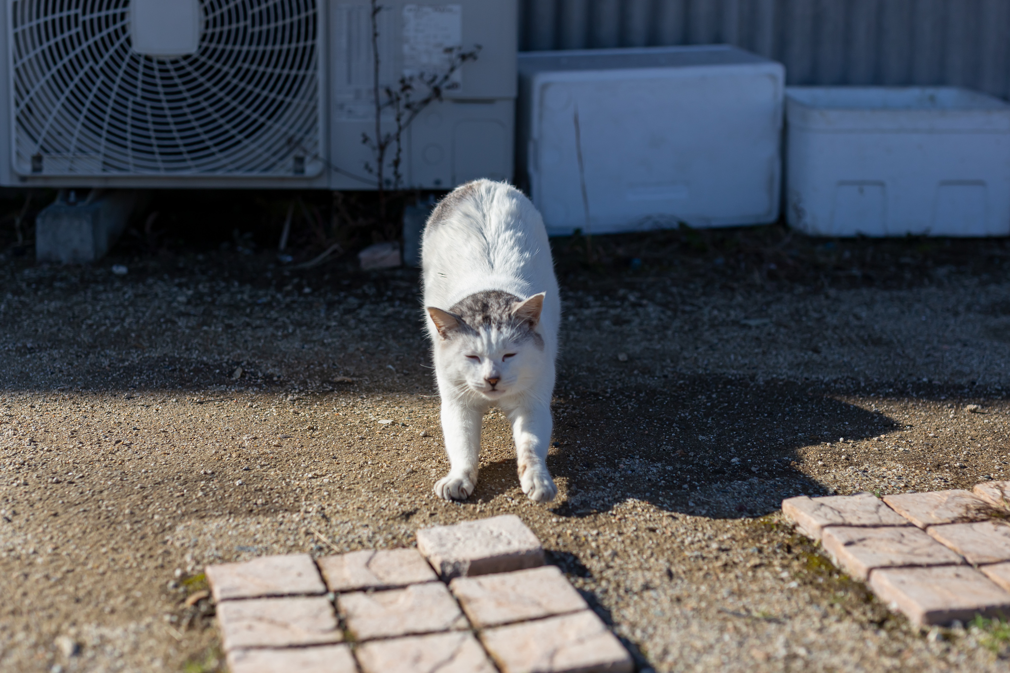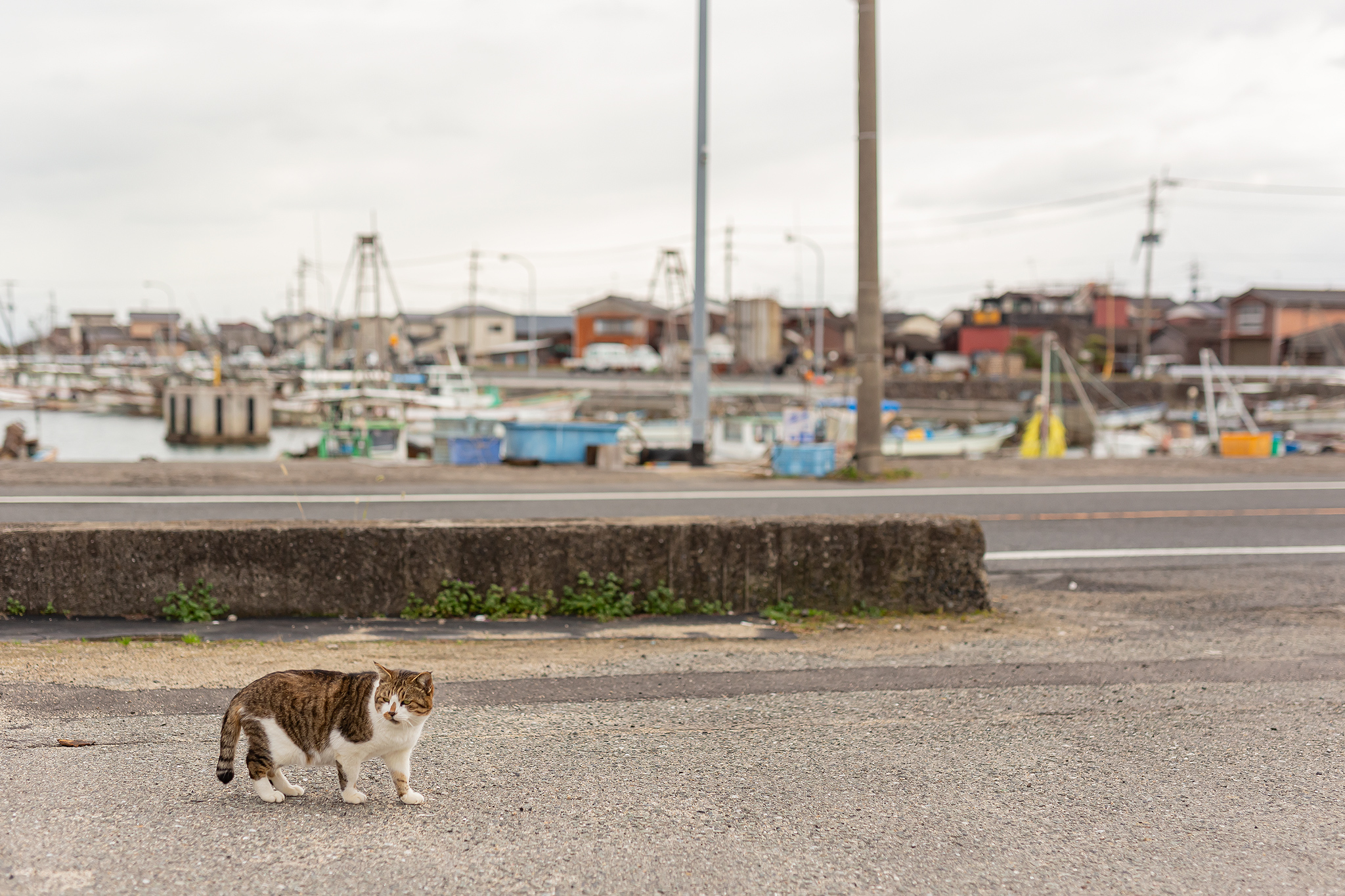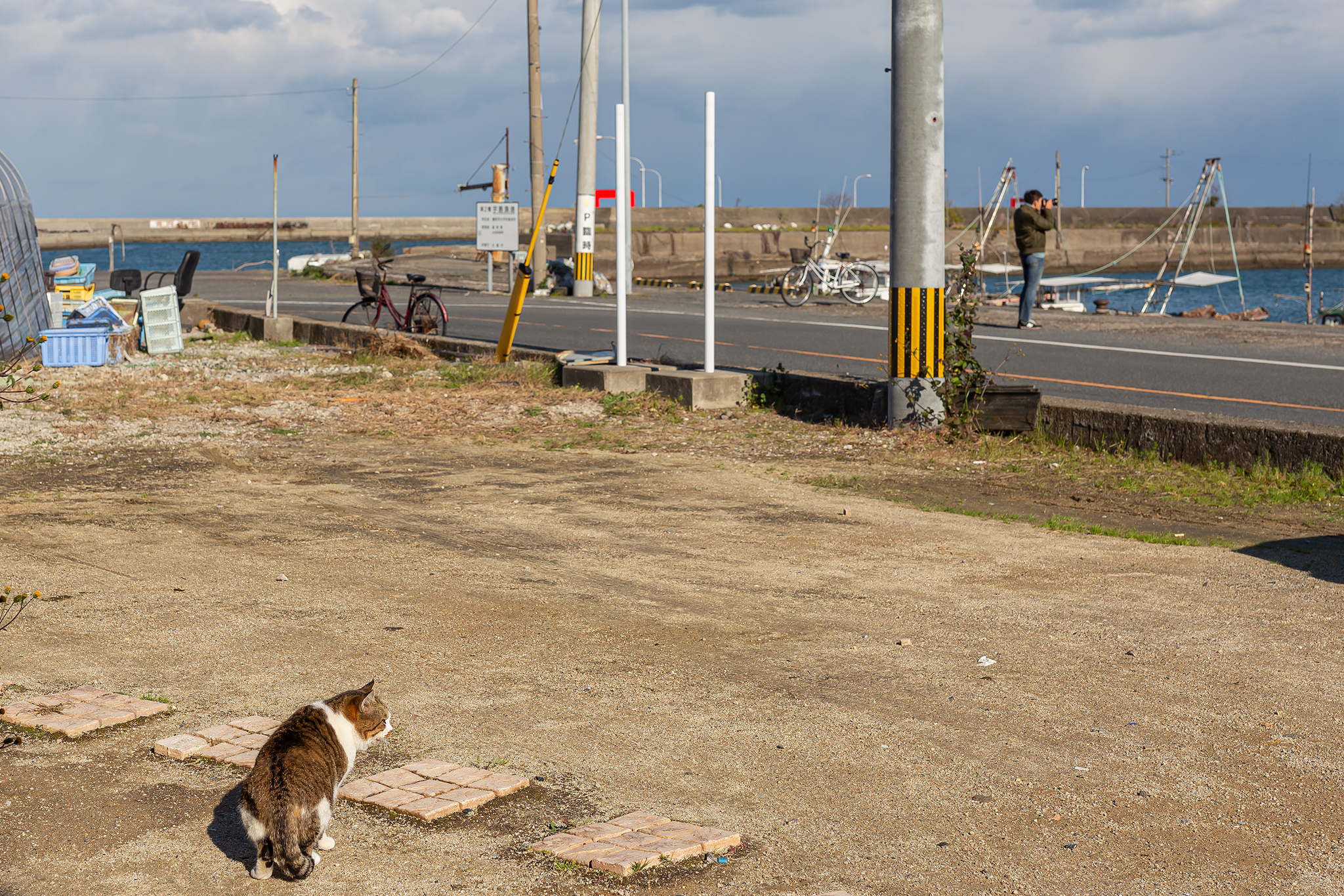 같이 있던 길 고양이는 어슬렁 거리며 항구 마을을 산책합니다.