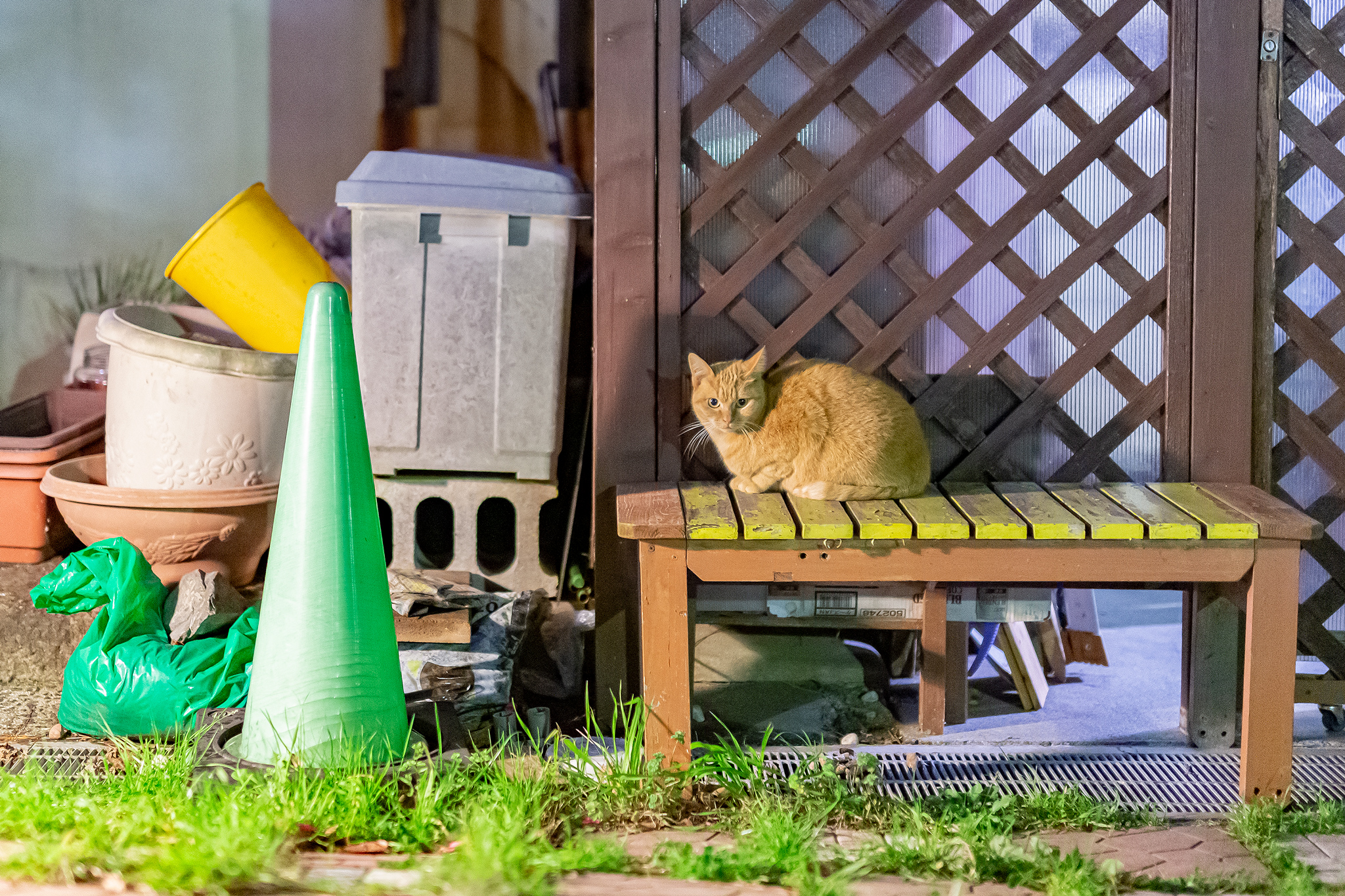 같이 있던 길 고양이는 어슬렁 거리며 항구 마을을 산책합니다.