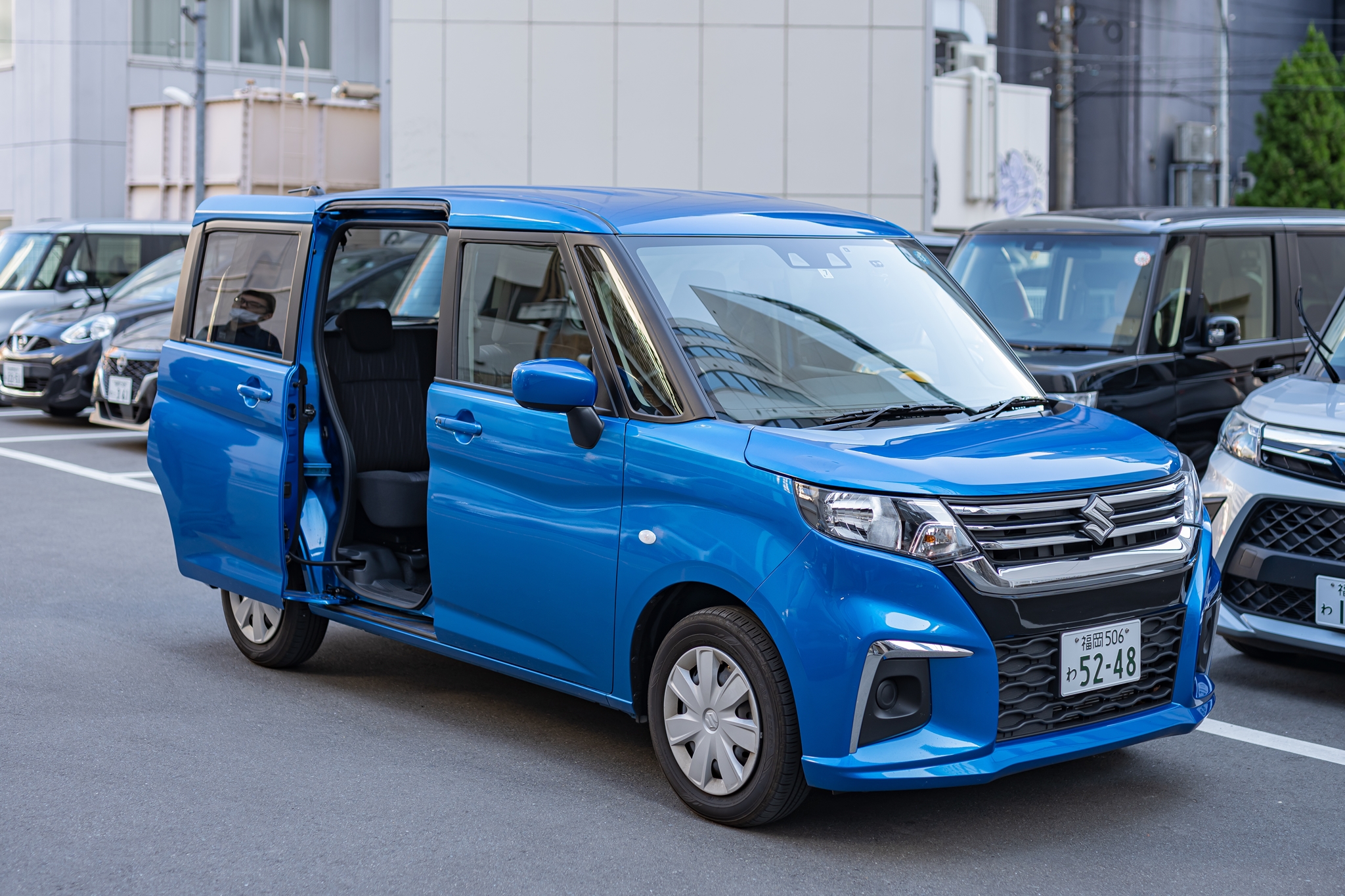 주차장에 주차 되어 있는 이번에 빌릴 스즈키 솔리오