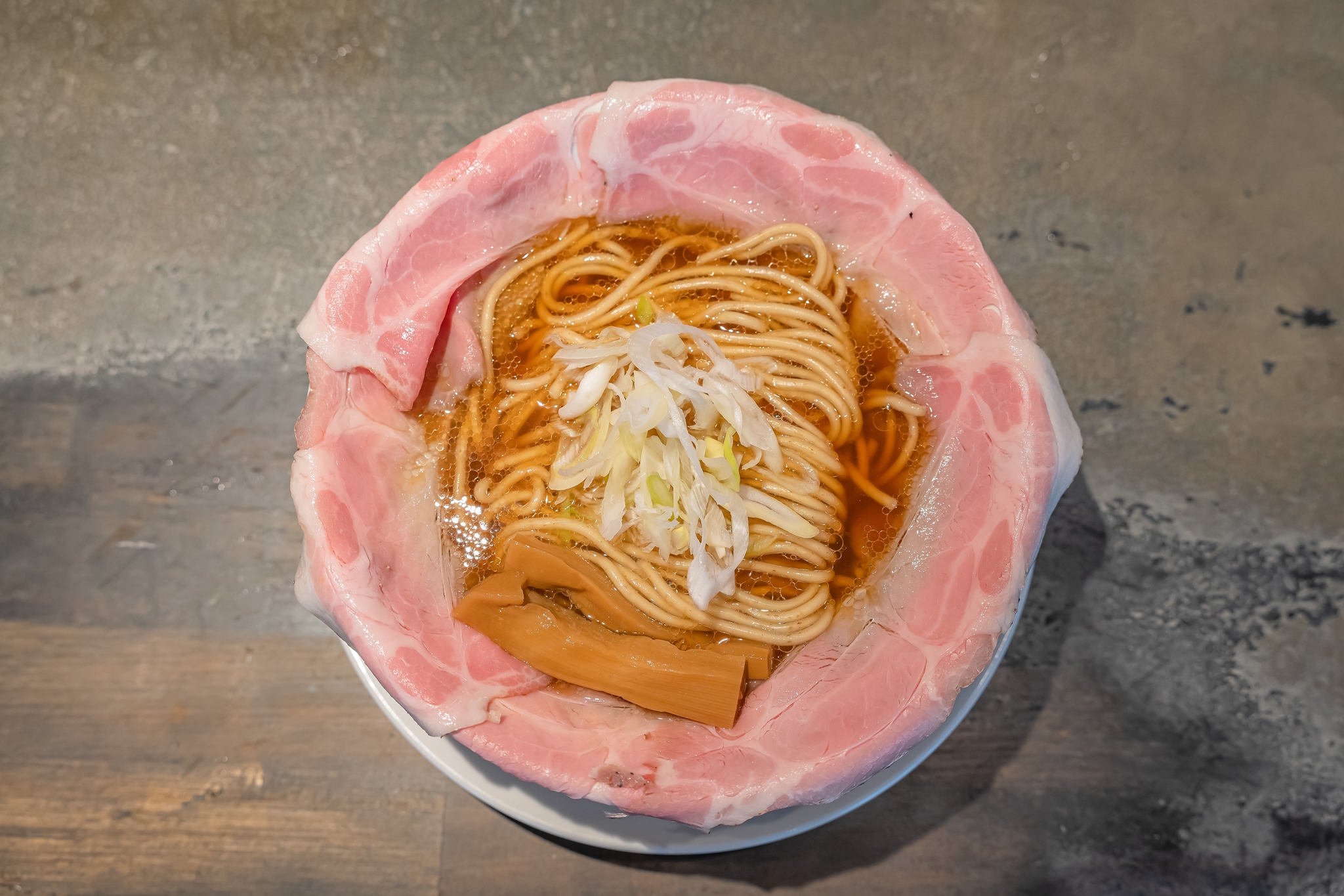 간장 육수에 대합, 바지락, 재첩 조개 등을 넣어 시원하고 감칠맛 가득한 육수가 일품이며 메뉴에 따라 들어있는 조개가 다릅니다. 메뉴는 시지미라멘(しじみラーメン, 재첩), 아사리라멘(あさりラーメン, 바지락), 하마구리라멘(はまぐりラーメン, 대합) 세 종류입니다. 길쭉한 멘마가 토핑으로 들어가 있으며 반숙양념계란인 니타마고(煮玉子), 수비드로 약하게 조리한 얇은 돼지고기 레어챠슈(レアチャーシュー)를 토핑으로 같이 먹으면 더욱 맛있습니다.