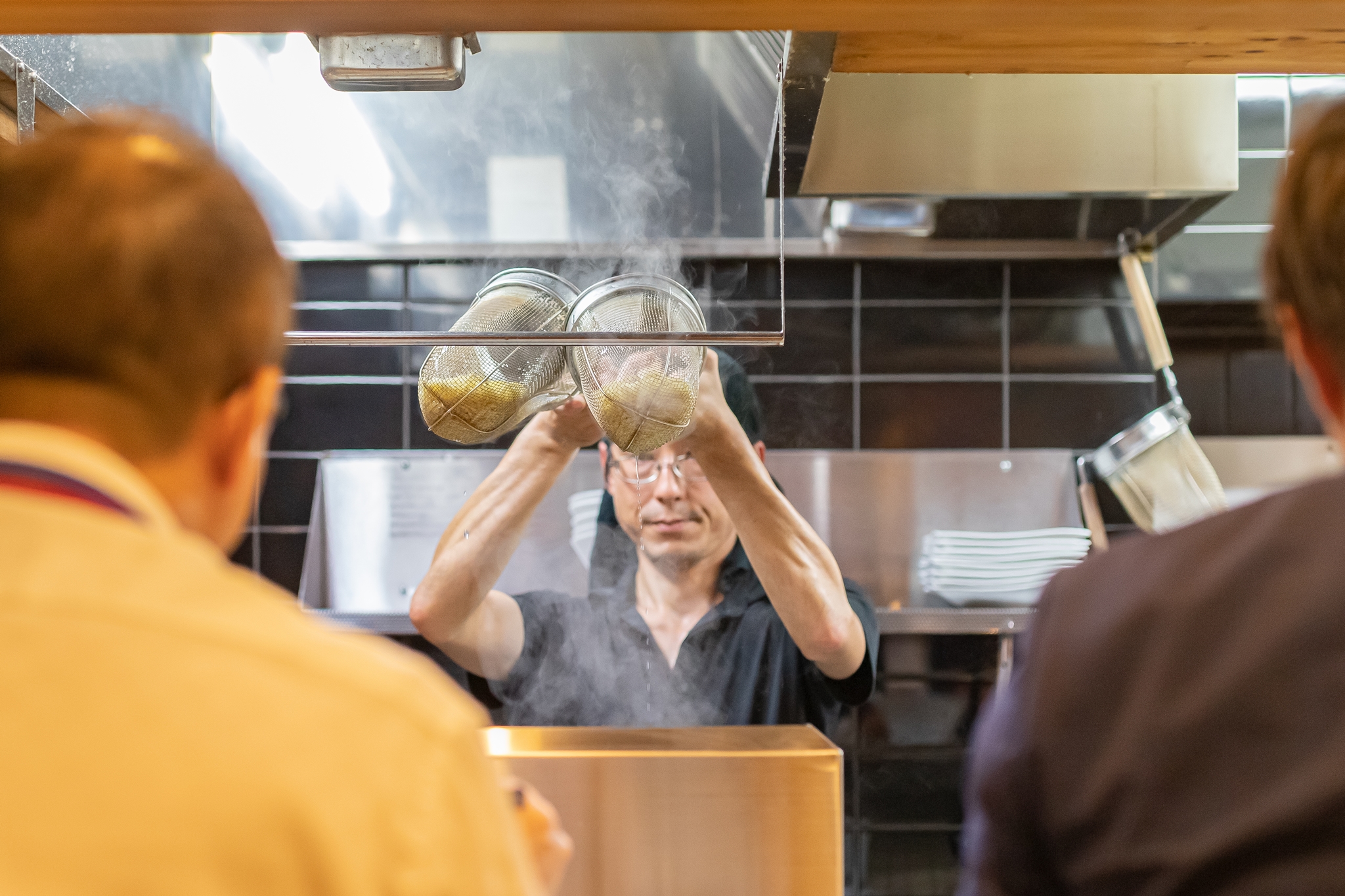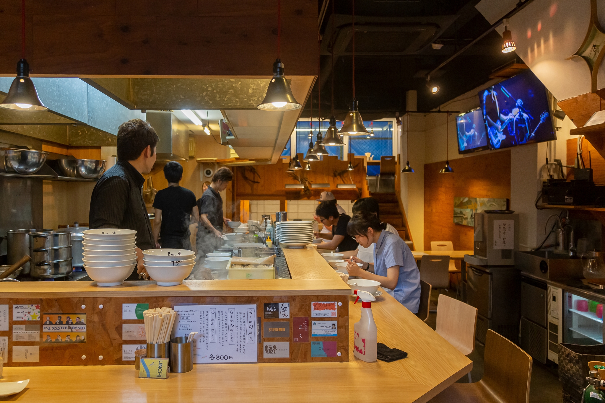 세계에서 가장 한가하다는 가게 이름과 다르게 가게 주변에는 항상 대기하는 사람으로 가득하고 깔끔하고 고급 진 인테리어로 라멘가게가 라기 보다는 고급 레스토랑이나 바의 느낌이 듭니다.