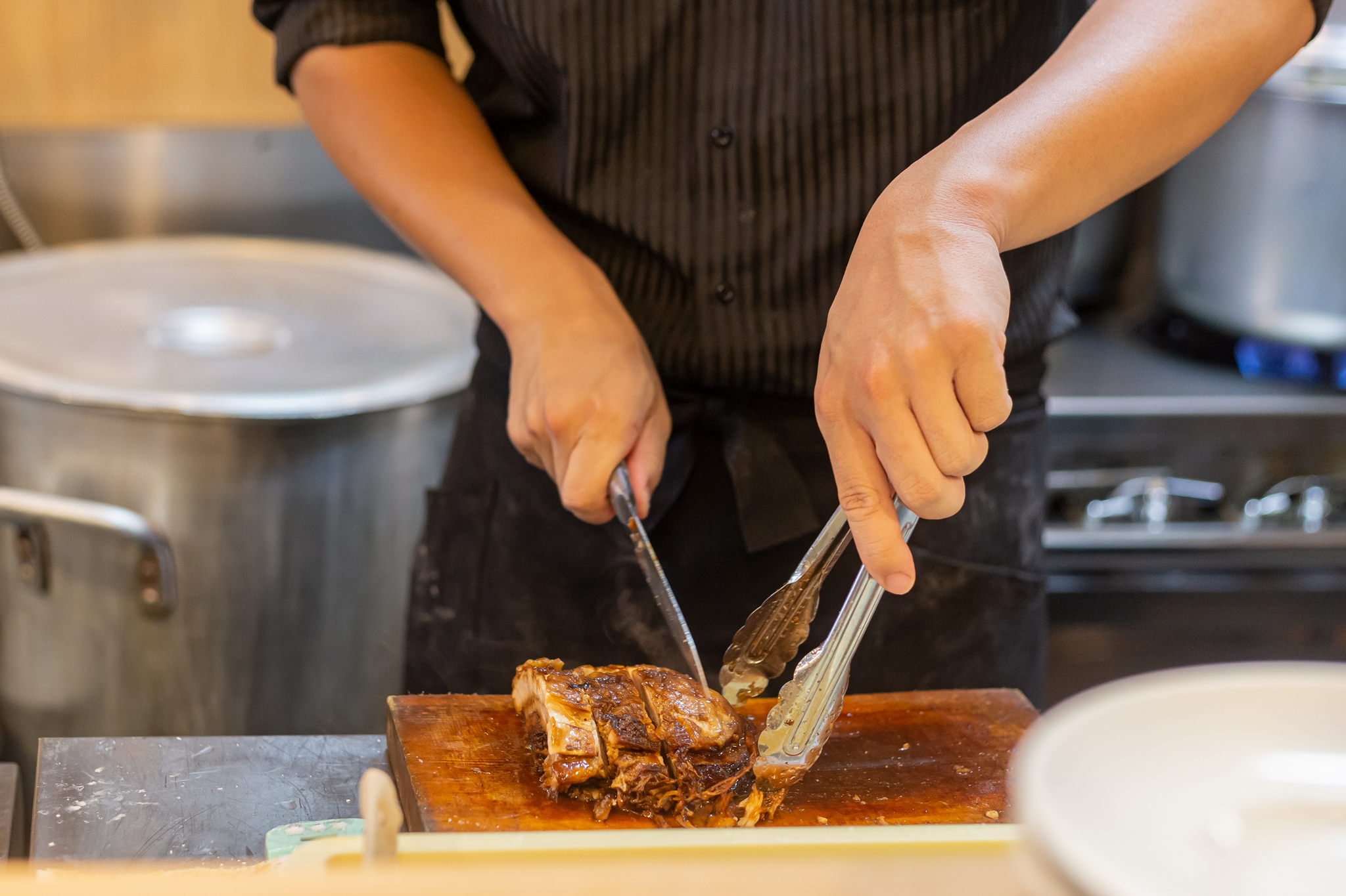 나고야의 브랜드 닭인 나고야 코친(名古屋コーチン)으로 육수를 내고 인류모두면류의 간장을 사용해 맛을 내었으며 토핑인 돼지고기 레어챠슈(レアチャーシュー)를 5장까지 무료로 선택할 수 있어 전부 선택하면 라면 그릇을 고기로 뒤덮는 재미있는 비쥬얼을 만날 수 있습니다.