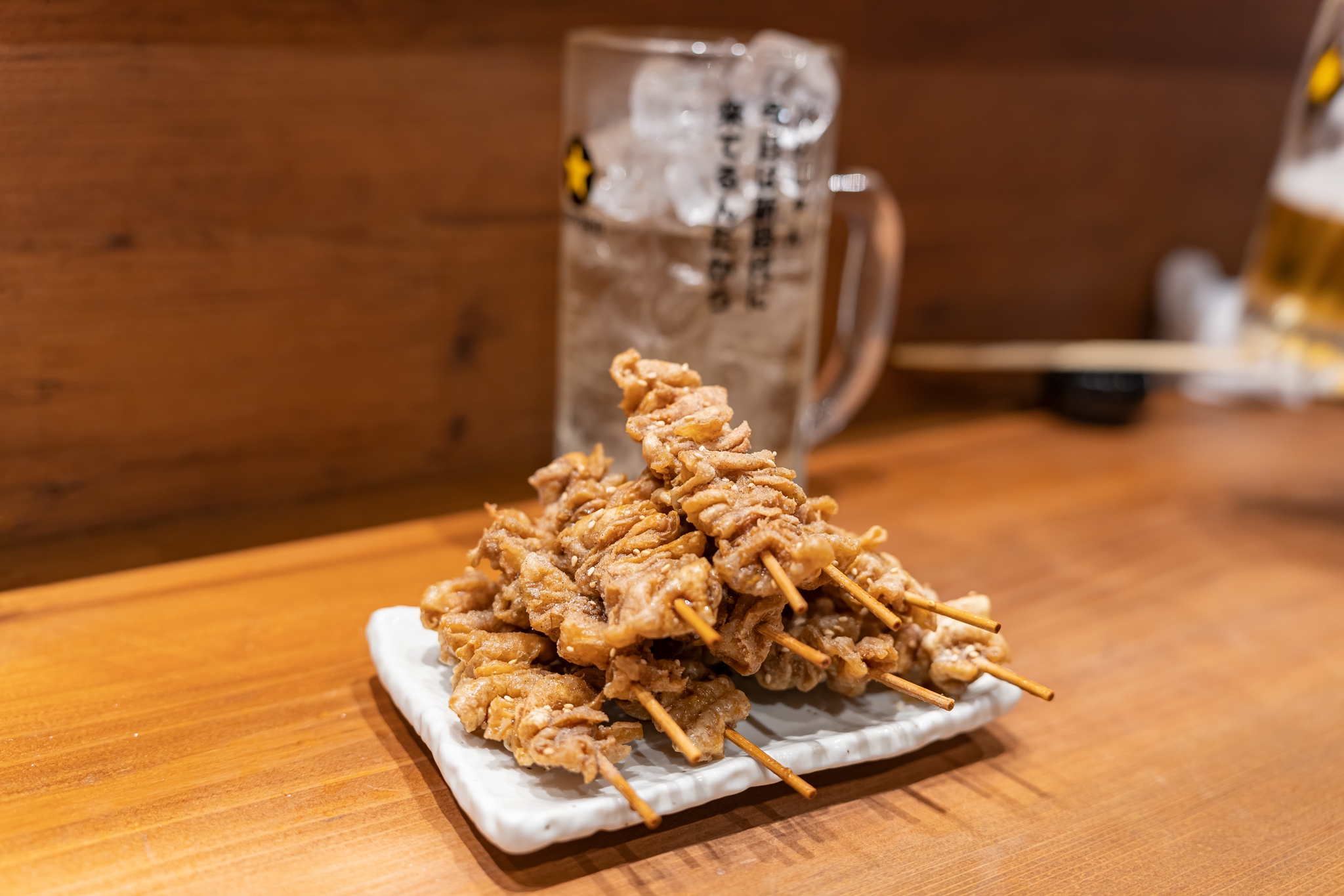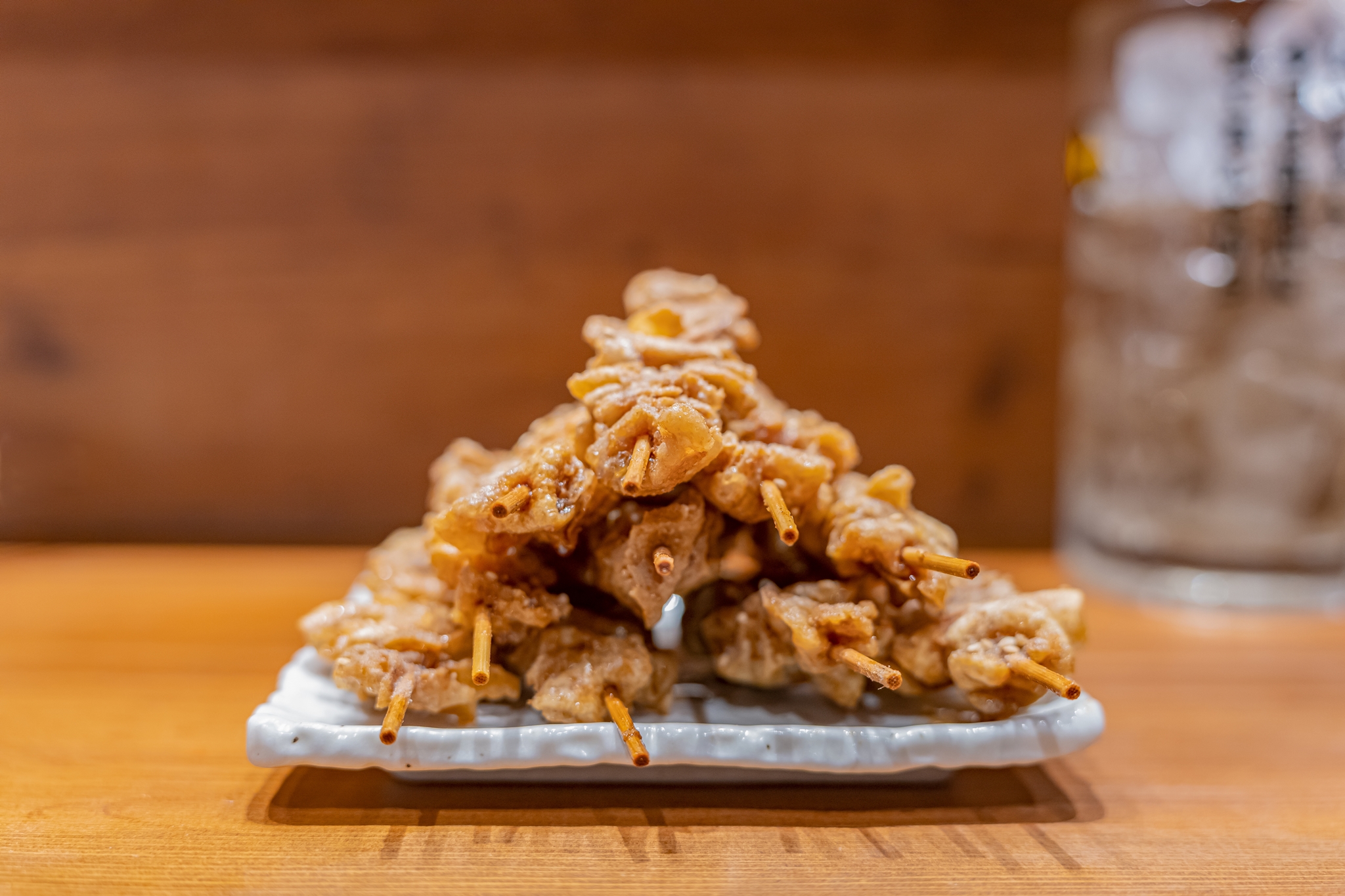안주로는 이곳이 원조이며 명물인 닭껍질 튀김 덴쿠시를 주문하였습니다.