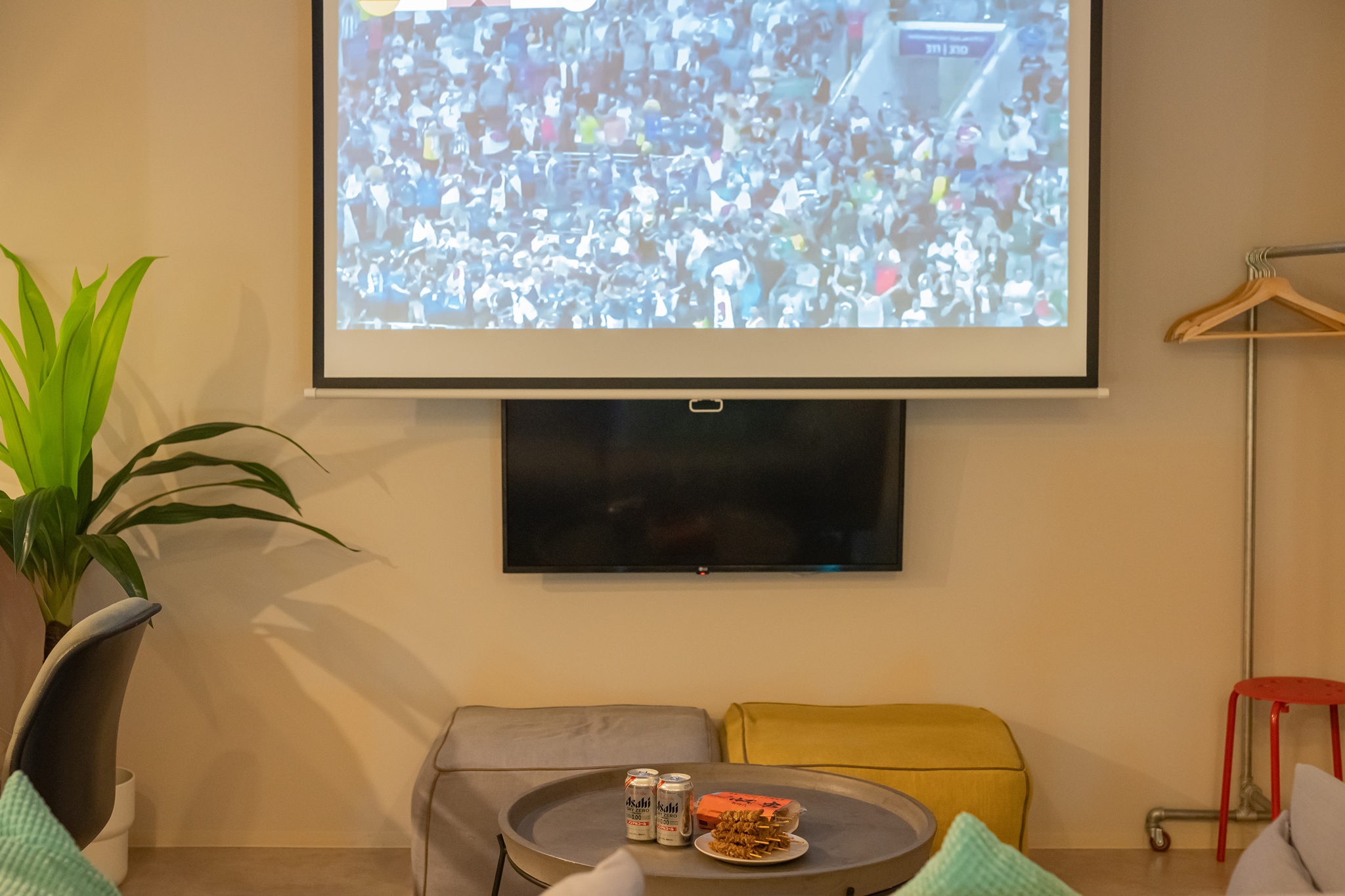 이번에 후쿠오카에서 숙박했던 새로 생긴 호텔 중 한 곳인데 일본 가정집 그대로의 모습으로 가족이나 여러명이 이용하기 좋은 곳 입니다. 침대가 4개 8명까지 숙박 가능이라 파티를 열어도 될 정도 입니다. 주방도 있고 토스트, 커피포트, 오븐 등이 전부 발뮤더 제품으로 요리도 할 수 있습니다. 도쿄 신바시 신지다이 이자카야에서 사온 덴쿠시를 발뮤더 오븐에 구워 테이블 위에 놓고 호텔에 설치되어 있는 빔 프로젝트로 큰 화면에서 카타르 월드컵 축구를 볼 준비를 마쳤습니다.