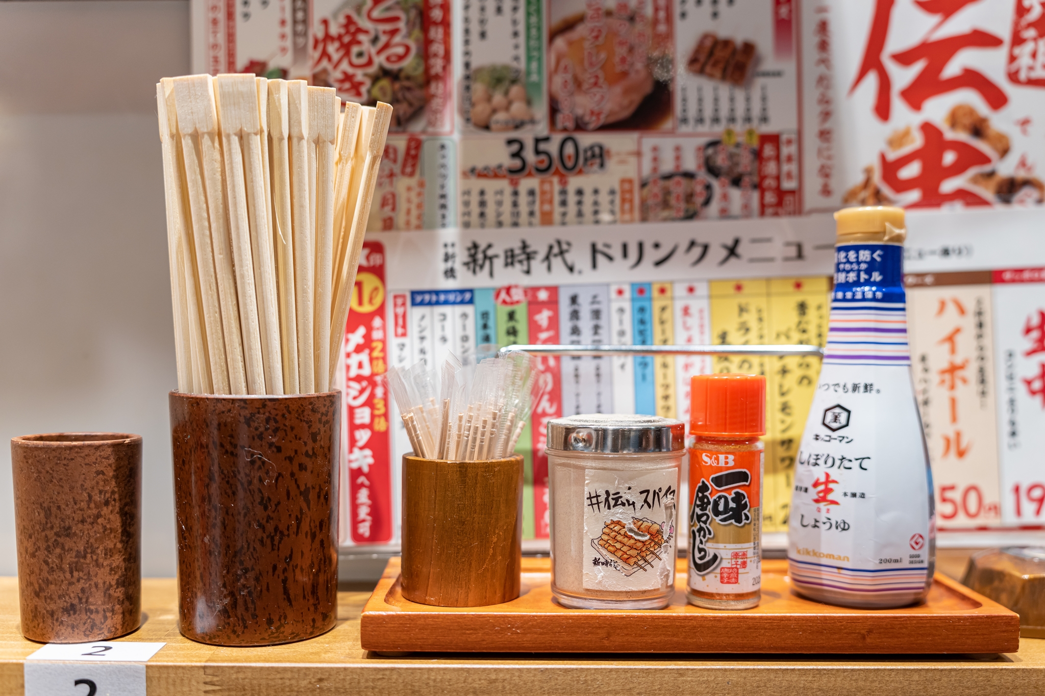 고추가루(一味, 이치미), 덴쿠시 전용 양념, 간장이 있었습니다.