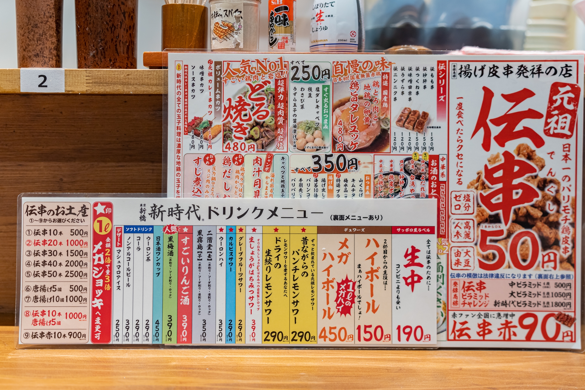 도쿄 신바시 신지다이의 닭껍질 튀김 꼬치를 먹는 것은 이자카야에서 먹는 것 보다 테이크 아웃해서 호텔에서 먹는것이 더 좋은 것 같습니다. 이자카야에서는 하이볼 1리터 450엔 + 오토오시 300엔 + 덴쿠시 10개 500엔 해서 1,250엔으로 오토오시 가격이 너무 아까웠는데 테이크 아웃은 가격은 같으며 오토오시를 받지 않으니 좋았습니다.