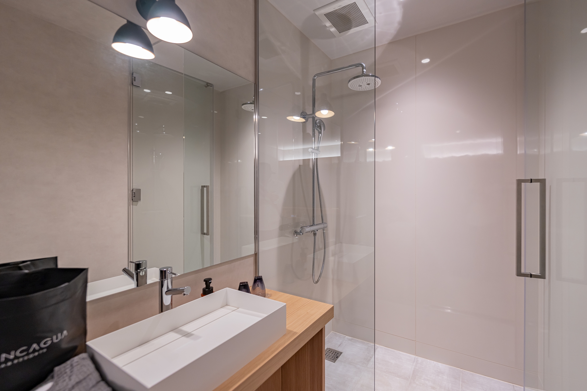 세면대, 샤워실, 욕실은 각각 문으로 나뉘어 있었습니다.