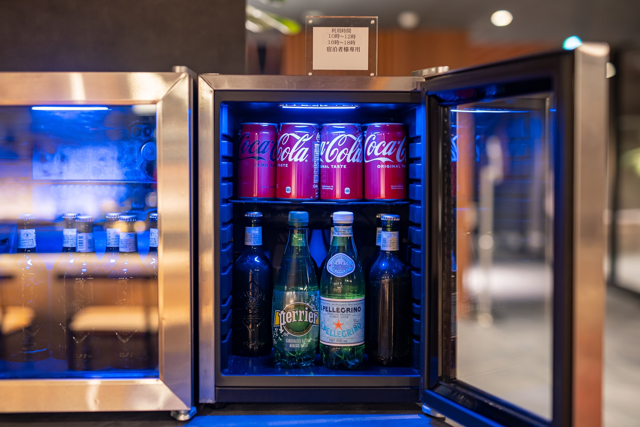 라운지에서 정해진 시간에 무료로 이용할 수 있는 음료