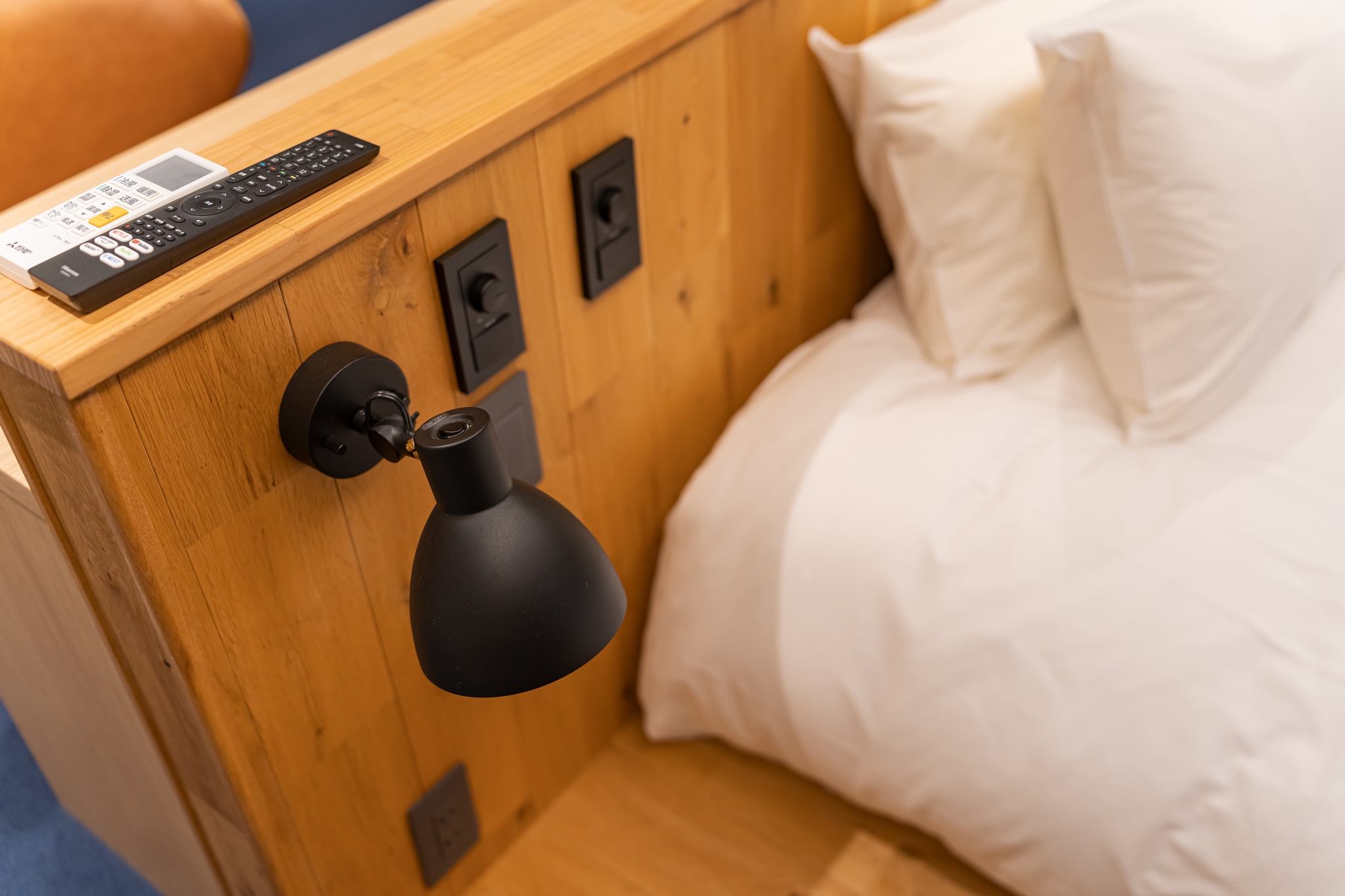 침대 머리 옆에는 조명과 콘센트가 있어 편리합니다.