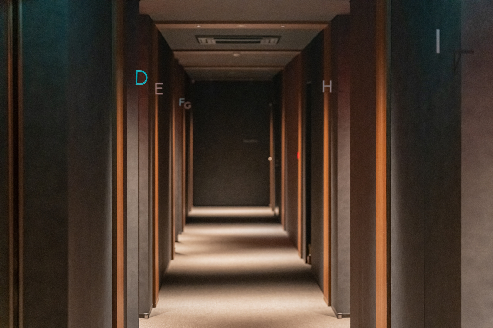객실 복도, 방은 알파벳으로 나뉩니다.