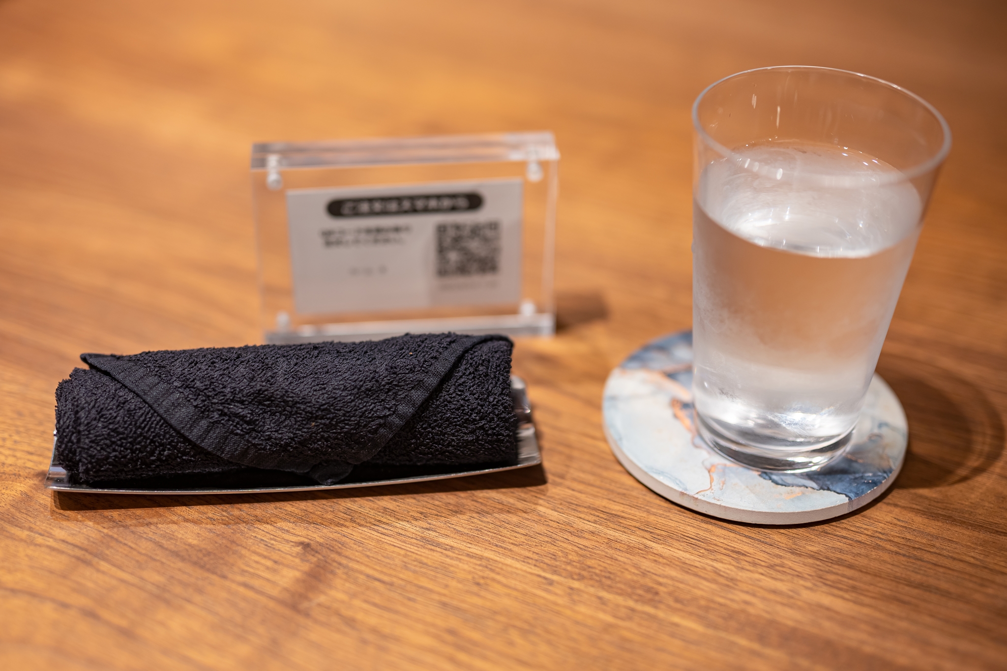 주문은 테이블 위에 QR 코드로 자신의 핸드폰으로 메뉴를 확인하여 주문합니다.