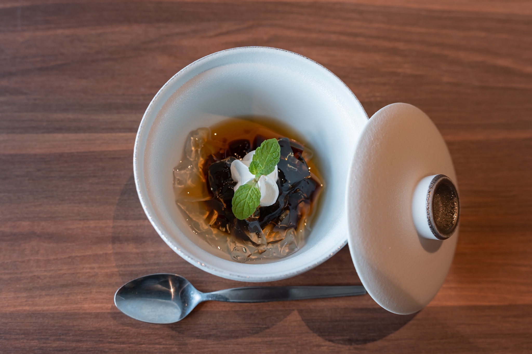 마지막은 역시 이쁜 도자기에 담겨 나오는 디저트 커피 젤리 였습니다.