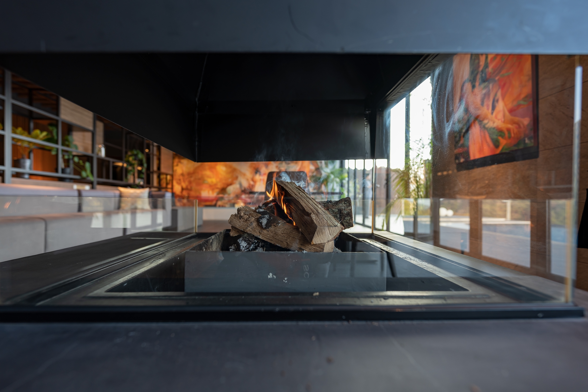 산이라 저녁에는 쌀쌀하기 때문에 화목난로에 불을 붙입니다.