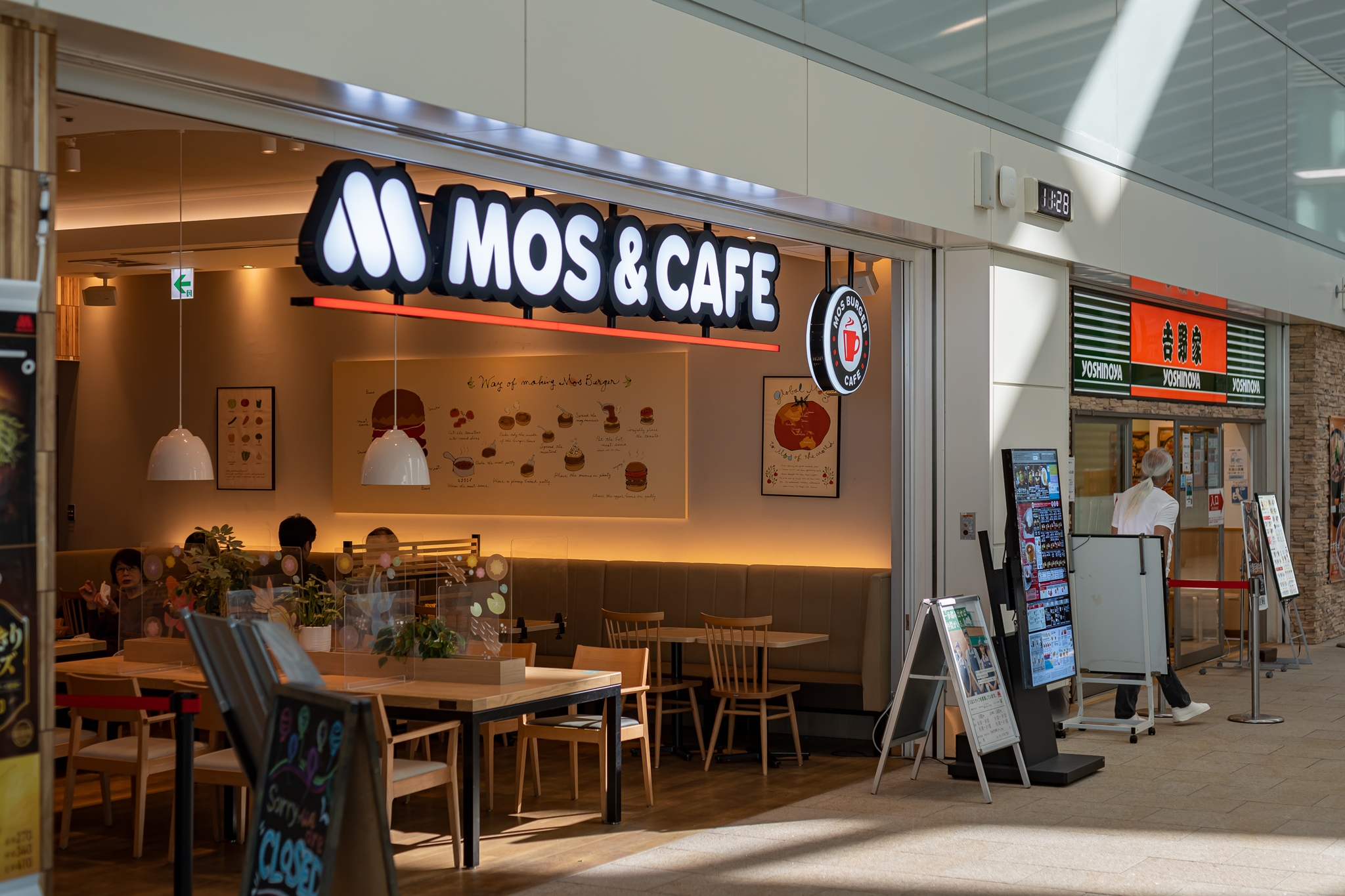 4층에서 우선 왼쪽으로 가면 일본 햄버거 프렌차이즈 모스 버거의 모스 카페와 규동 전문점 요시노야가 있습니다.
