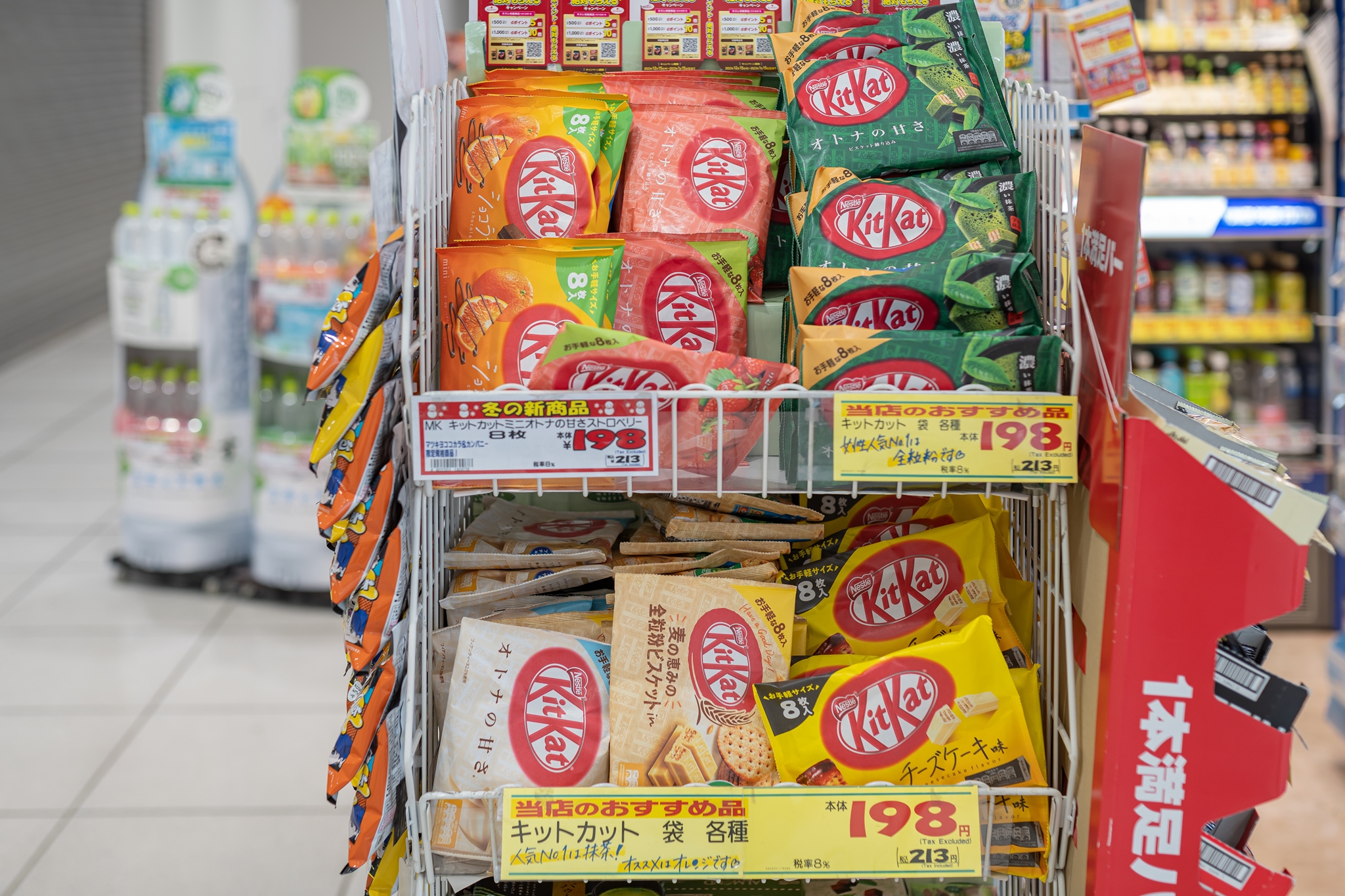각각 5,000엔 이상 구매하면 면세가 되며 일반 상품이외의 기념품도 판매합니다. 기념품의 경우 일반 상품과 함께 5,000엔 이상 사지 않으면 면세가 되지 않기 때문에 출국장 안의 기념품 숍을 이용하는 것이 좋습니다. 하지만 일본 편의점 만의 특별한 상품도 있고 정말 가끔 행사를 하는 상품들도 있기 때문에 들려보면 좋을 것 입니다.